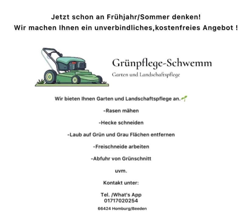 ✅ Perfekter Service, ✅ sehr gute, zuverlässige und ordentliche Arbeit an Rasen, Hang und Hecke! Durch die ✅ individuelle und eigenständige Terminierung mit Absprache ✅ unkomplizierte Erledigung der gewünschten Arbeiten. 💯Sehr empfehlenswert und faire, sehr attraktive ✅ Preisgestaltung. Wir sind auf Grund der Leistung zum Bestandskunde geworden. DANKE! 👍🌱 🌿