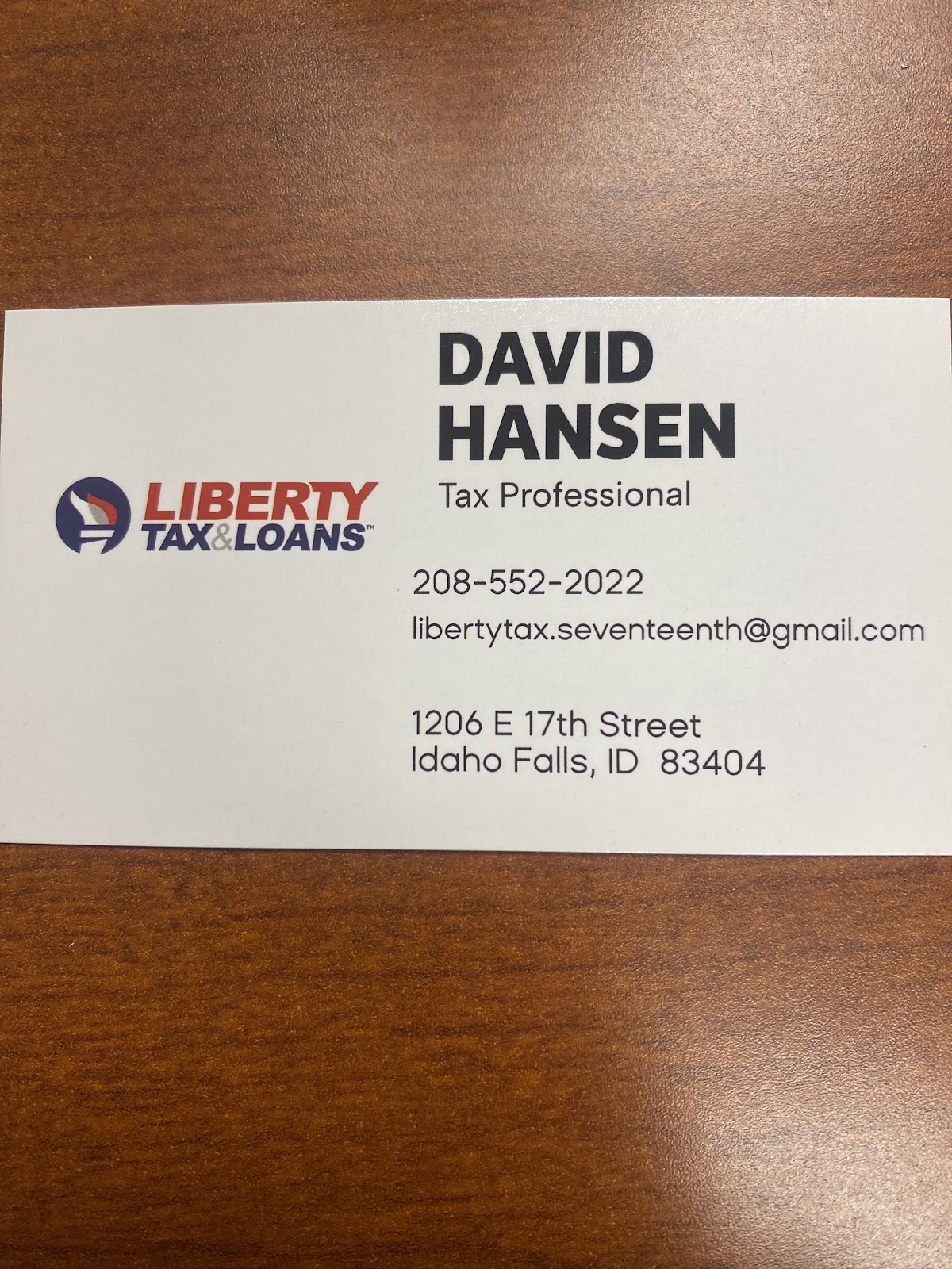 Mein Steuerberater, David Hansen, war hilfreich und hat mich dieses Jahr wirklich großartig bei meiner Steuervorbereitung unterstützt. Er hat mir geholfen, einige große Kredite zu finden, die mir entgangen wären, wenn ich einfach ein Online-Steuervorbereitungsprogramm genutzt hätte. Toller Service und ich würde Ihnen wärmstens empfehlen, einen Termin mit David bei Tax Liberty Idaho Falls zu vereinbaren, um Ihre Steuern zu erledigen.