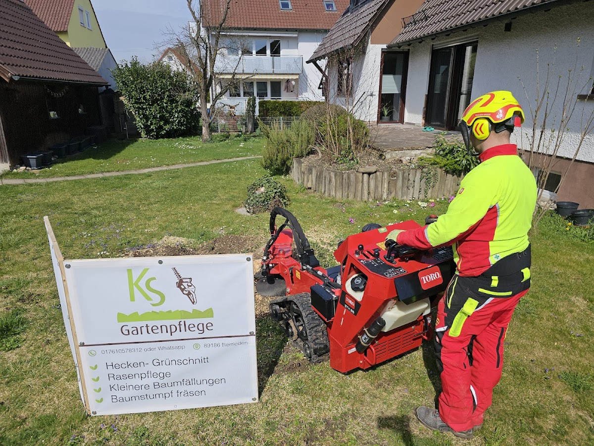 Kim Schneider hat in diesem Frühjahr die Bäume rund um unsere Firma geschnitten und einen alten Baumstumpf herausgefräst. Hat alle perfekt geklappt. Sehr zu empfehlen.
