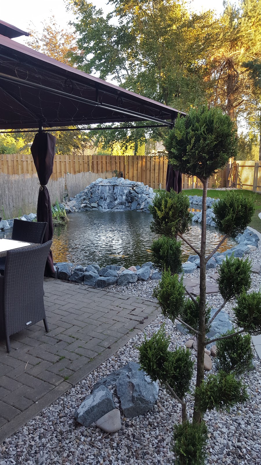 Wir sind sehr zufrieden mit den Arbeiten der Firma Hinz. Von der Beratung über die Ausführung bis zum fertigen Ergebnis haben Herr Hinz und sein Mitarbeiter super Arbeit geleistet. Weil der Koiteich so gut gelungen war, haben wir gleich noch einen zweiten, etwas kleineren Teich anlegen lassen. Das Besondere am Teichkonzept von Hinz ist die Kombination von Teich und Filtergraben, durch den man auf die Aufstellung von externen Filtern verzichten kann. Durch diese Lösung hat man weniger Reinigungsaufwand und der störende Anblick der Filter fällt weg. Neben den Arbeiten am Teich erhält man durch Herrn Hinz jede Menge wertvolle Tips über die Teichpflege und Haltung der Fische.Wir können die Firma guten Gewissens weiterempfehlen. Zuletzt noch ein Tip: das Honorar für die erste Beratung mit Besichtigung ist gut angelegt, wenn man ernsthaft vorhat, einen optisch ansprechenden Teich bauen zu lassen. Wer nur ein kleines „Loch“ für ein paar Fische ausheben lassen will, braucht keine Teichbau-Firma, da reichen Schaufel oder Minibagger.