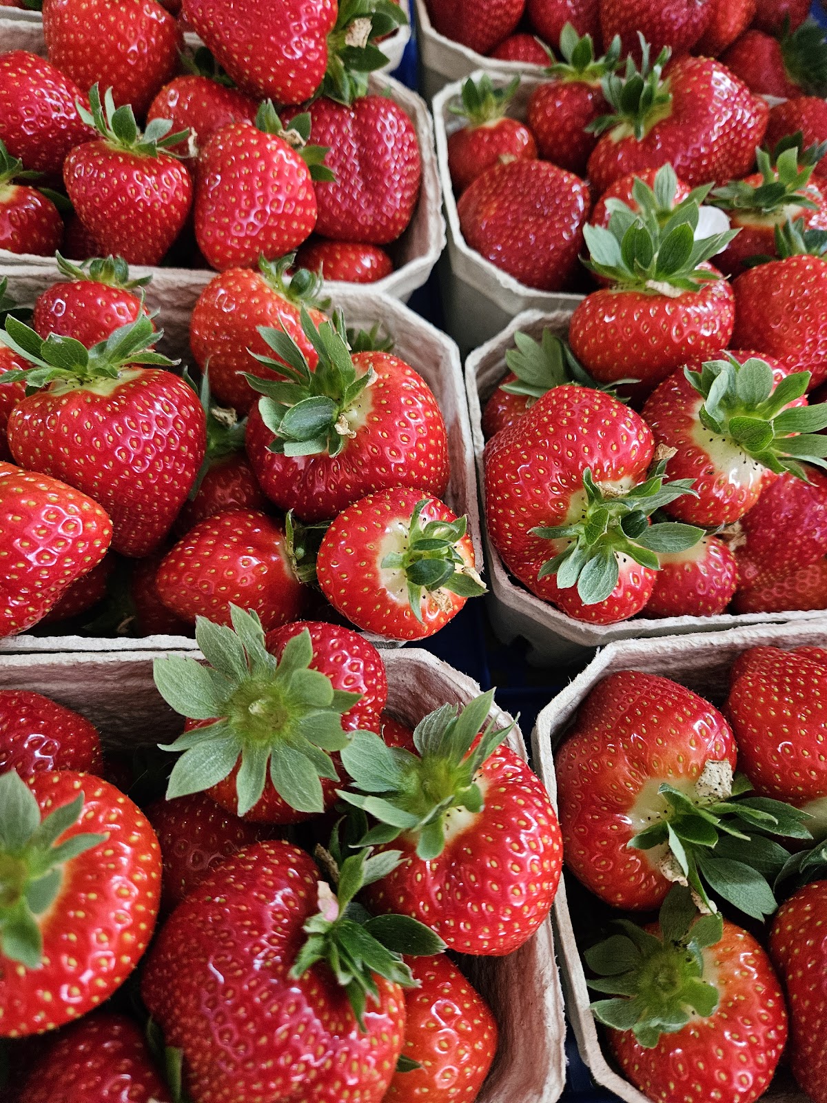 Wir haben wieder leckere frische Erdbeeren zum super Preis auf dem Feld gepflückt. Und im Hofladen weiteres Obst und Gemüse gekauft. Pflücken ist täglich möglich - dazu im Hofladen melden. Eigene Körbchen können mitgebracht werden oder ihr kauft eins Vorort. Danke. Bis zum nächsten Mal.