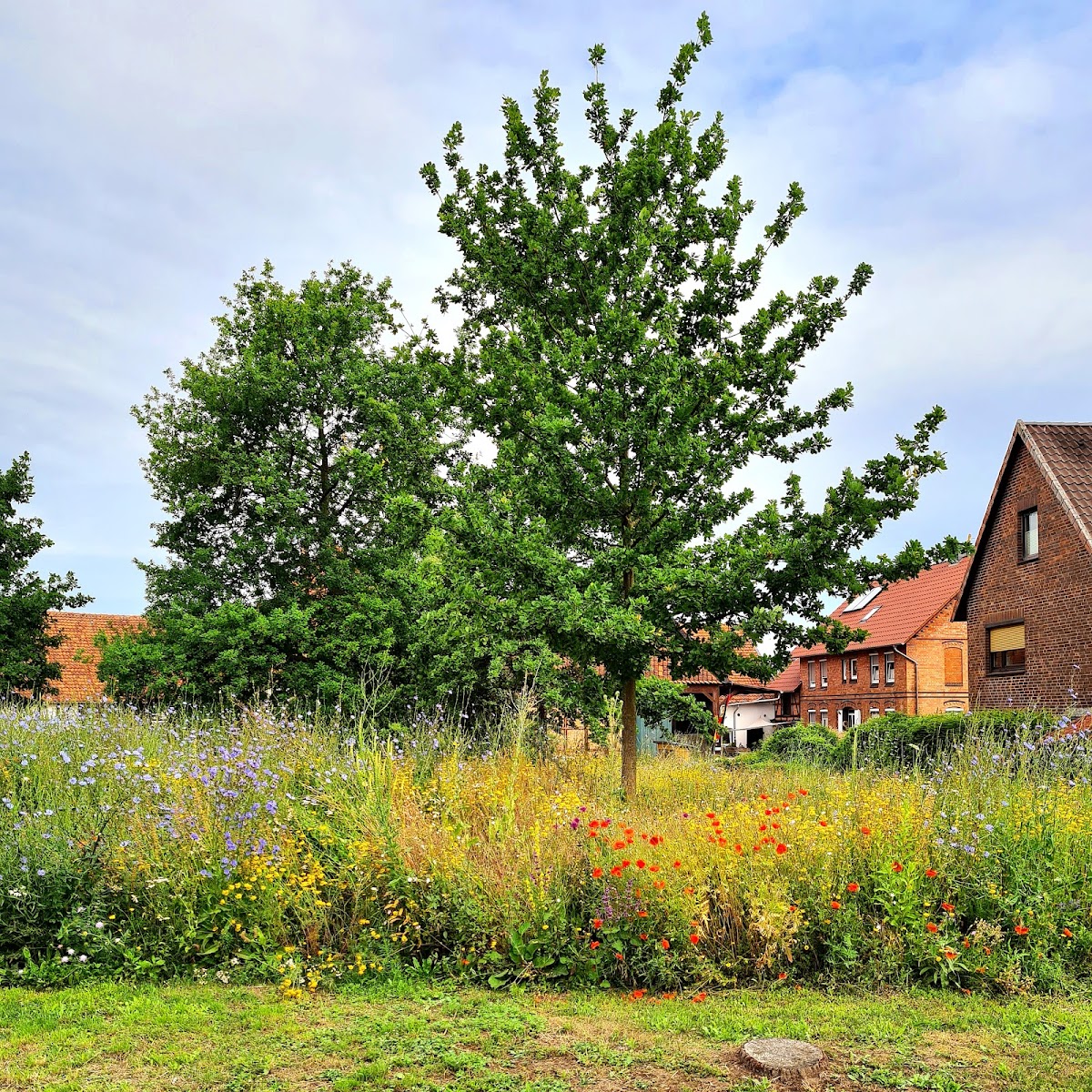 Eine Blühwiese ist etwas für die kleinsten Lebewesen, unseren Insekten. 🐞🪲🐝🐜🐛🦋🕷🦗🕸 Sie soll als Schutzzone und Nahrungsquelle für alle Insekten und kleinen Tiere dienen. Sicherlich gibt es Monate im Jahr, an dem diese einfach ungepflegt und "hässlich" aussieht und nicht gerade dem Auge des Betrachters schmeichelt. Dennoch ist diese Form des Naturschutzes wichtig. Auch wenn auch dies mitten im Ort befindet. Im Mai hat diese Wiese die schönste Strahlkraft ... 🤩