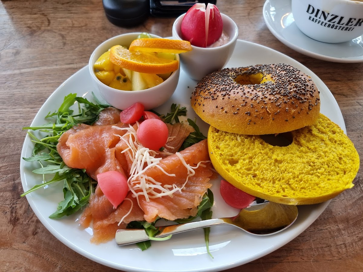 Eine richtig schöne und hochwertige Kaffeerösterei. Das Frühstück ist sehr vielseitig, qualitativ und auf den Tellern hübsch angerichtet. Die Kaffees schmecken fantastisch. Der Kuchen sieht zauberhaft aus. Ein Besuch in der Rösterei Dinzler lässt keine Wünsche offen. 💯❤️