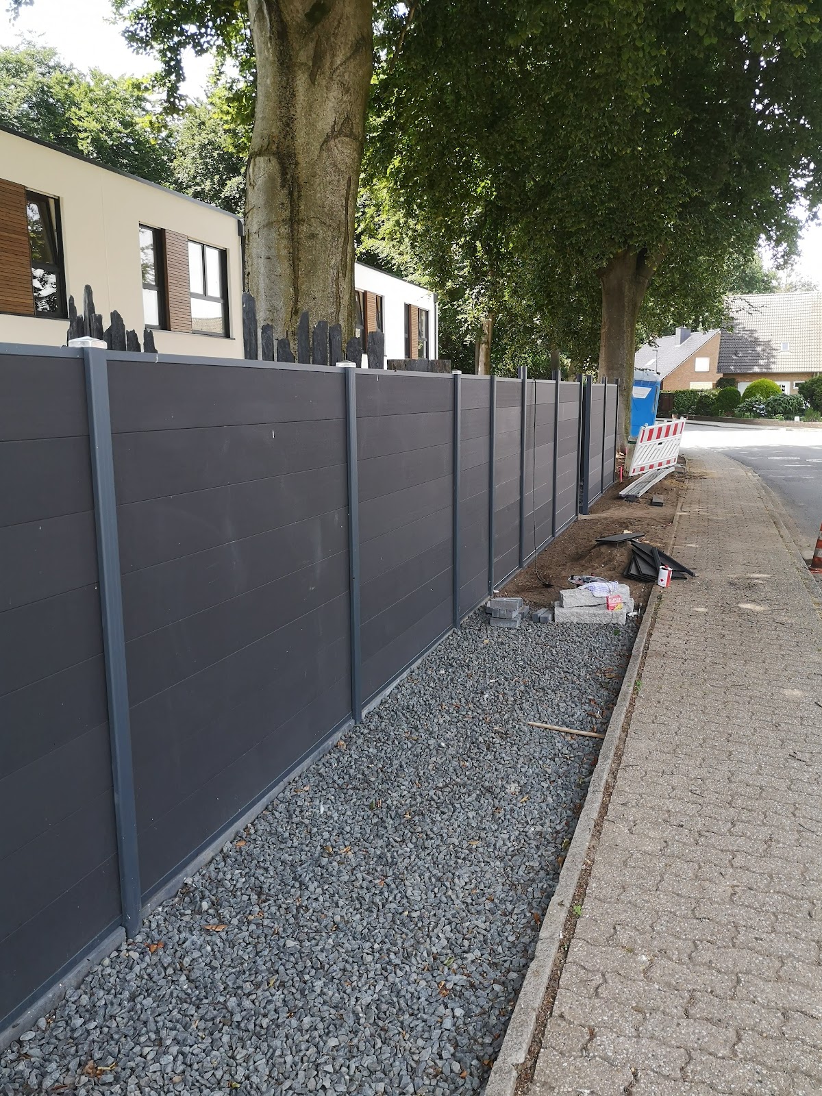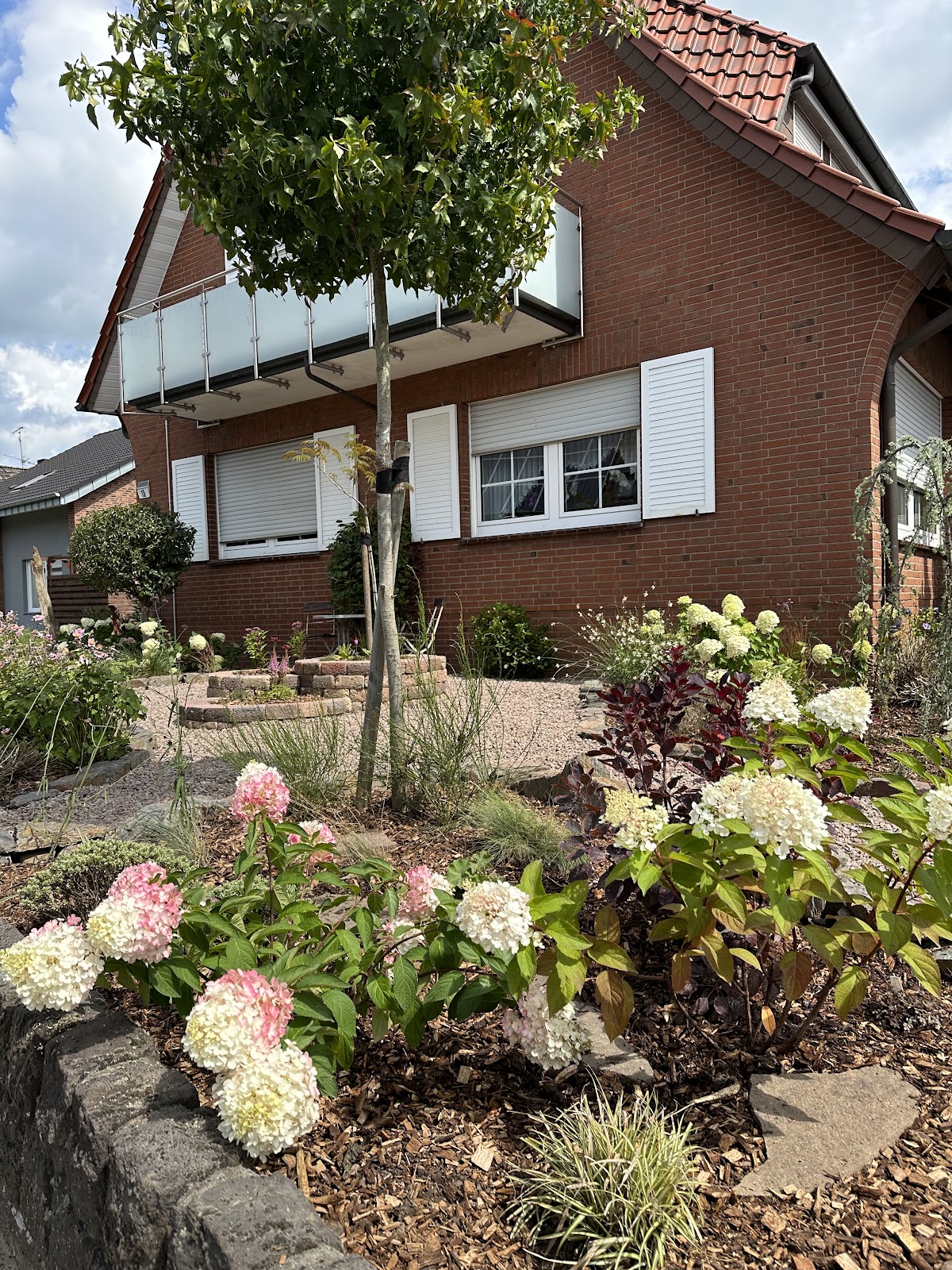 Der Marius und seine Leute sind schon klasse, auf die Frage "Was soll´s denn werden?" hatte ich nur "Keine Ahnung, hübsch und pflegeleicht..." als Antwort. Am Ende war´s genau so wie ich es hätte haben wollen wenn ich es denn hätte beschreiben können ;-) Magie ;D Erklärend dazu: Das untere, hell belegte Gelände ist verdichtet und mit einer "wassergebundenen Wegdecke" abgedeckt, weil dort ein Gartenhaus nebst Gerätehütte aufgestellt wird. Dann kann ich das Restliche an freiem Platz nach eigenem Ermessen bestellen mit Pflanzkübeln oder einem Brunnen, wie auch immer.
