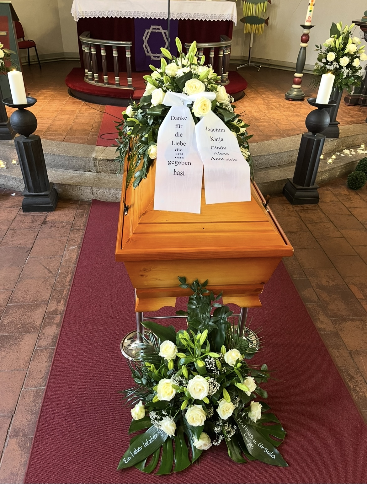 Toller Blumenladen Die Chefin hat genau nach unseren Vorstellungen denn sackschmuck wie auch die Gestecke für die Säulen umgesetzt. Man merkt , das ist mit Liebe gemacht worden. Kann ich nur weiterempfehlen.!!