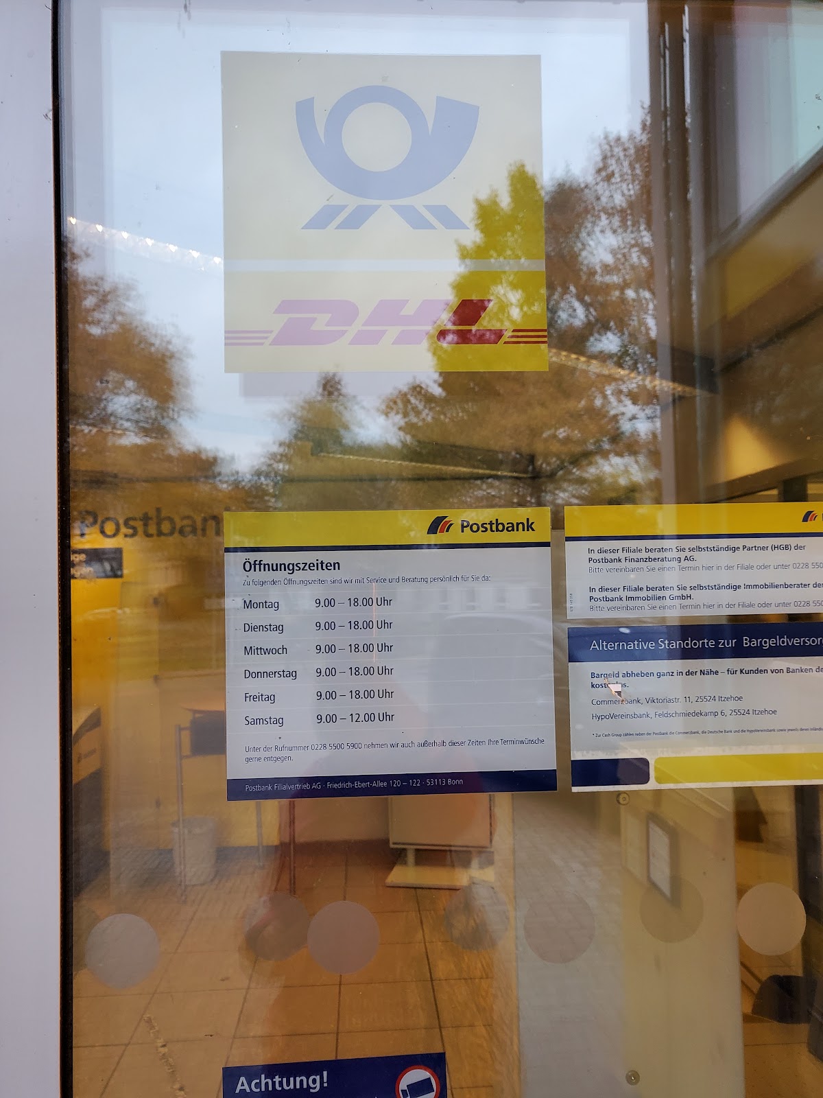 Ich kann mich nur bedanken bei der netten Dame in der Postfiliale Itzehoe. Super Service und es wurde sogar noch bei mir angerufen, weil ich einen Fehler im Ausfüllen des Nachsendeauftrag machte. Besser geht's nicht!