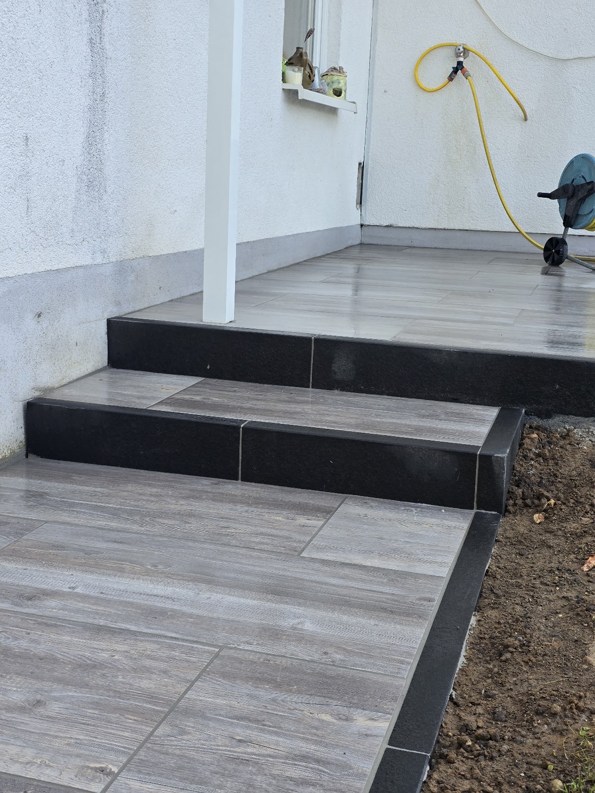 Wir hatten eine 21qm Terrasse zu fliesen. Allerdings mit Platten in der Größe 1mx1m, also ein sehr großes Format für den Außenbereich. Um das ganze noch zu erschweren mussten 2 Säulen ausgeschnitten werden. Wir sind vom Ergebnis begeistert! Es wurde sehr gut und sehr schnell gearbeitet. Das Team ist mega gut auf unsere Wünsche eingegangen. Hätte das Wetter mitgespielt wäre der Auftrag in 3 Tagen erledigt worden. Die Platten wurden in Drainagebeton gelegt und mit einer super 2K Fuge versehen. Es sieht klasse aus denn die Beratung durch Herrn Gashi, bzgl. Material und Farbe, war optimal! Unseren Hof ließen wir dann auch noch mit der speziellen 2K Fuge verschönern. 😃 Vielen Dank für die tolle Arbeit.