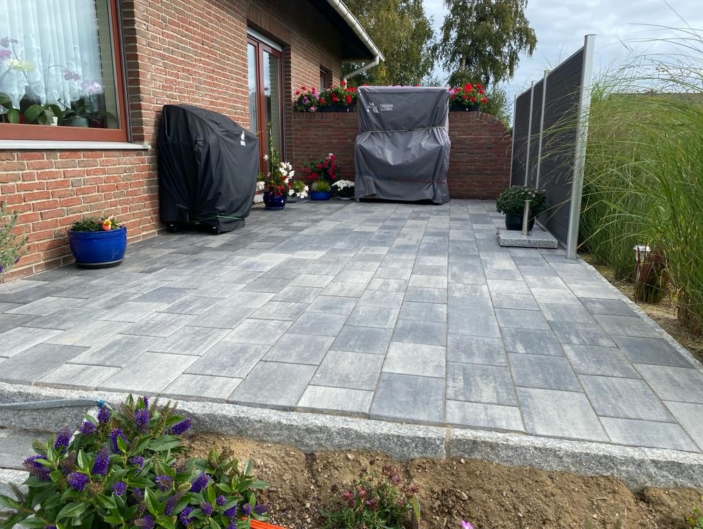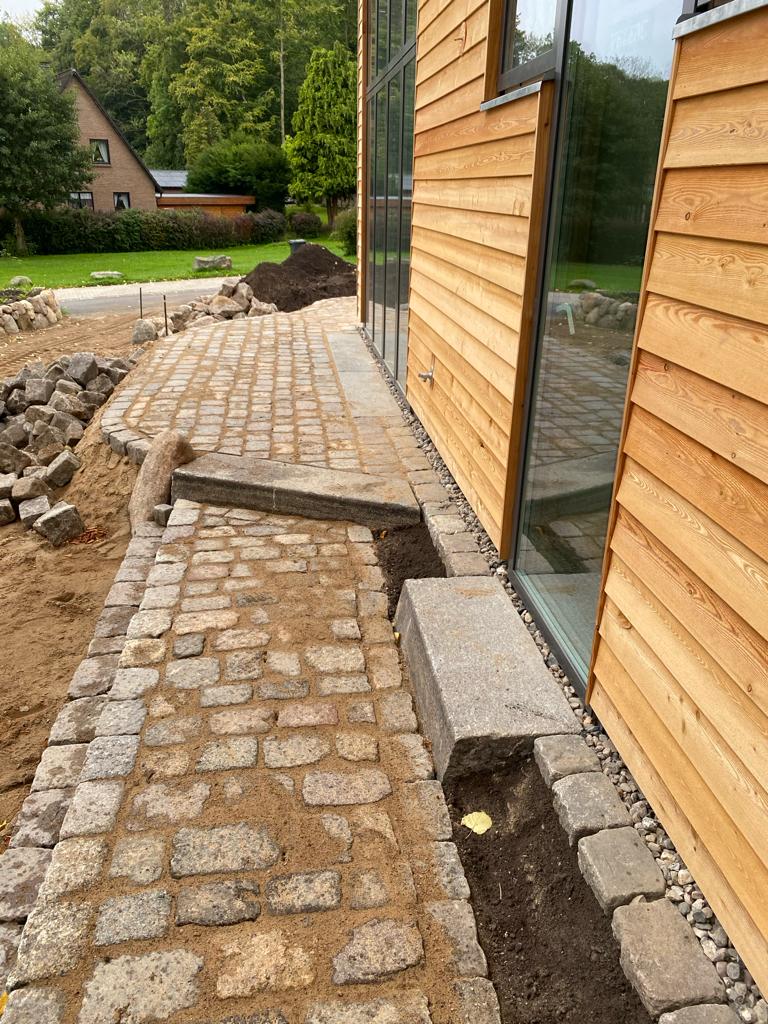 Björn hat bei uns eine Terrasse gelegt und den Weg um das Haus auch. Alles Tipp Topp, schnell und absolut akkurat.