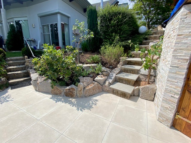 Garten und Landschaftsbau Zimmermann hat mit einer guten Preis Leistung überzeugt! Die schwierige Umsetzung der Bruchsteinmauer und Treppe wurde von einem professionellen Team zu unserer vollsten Zufriedenheit fertiggestellt.