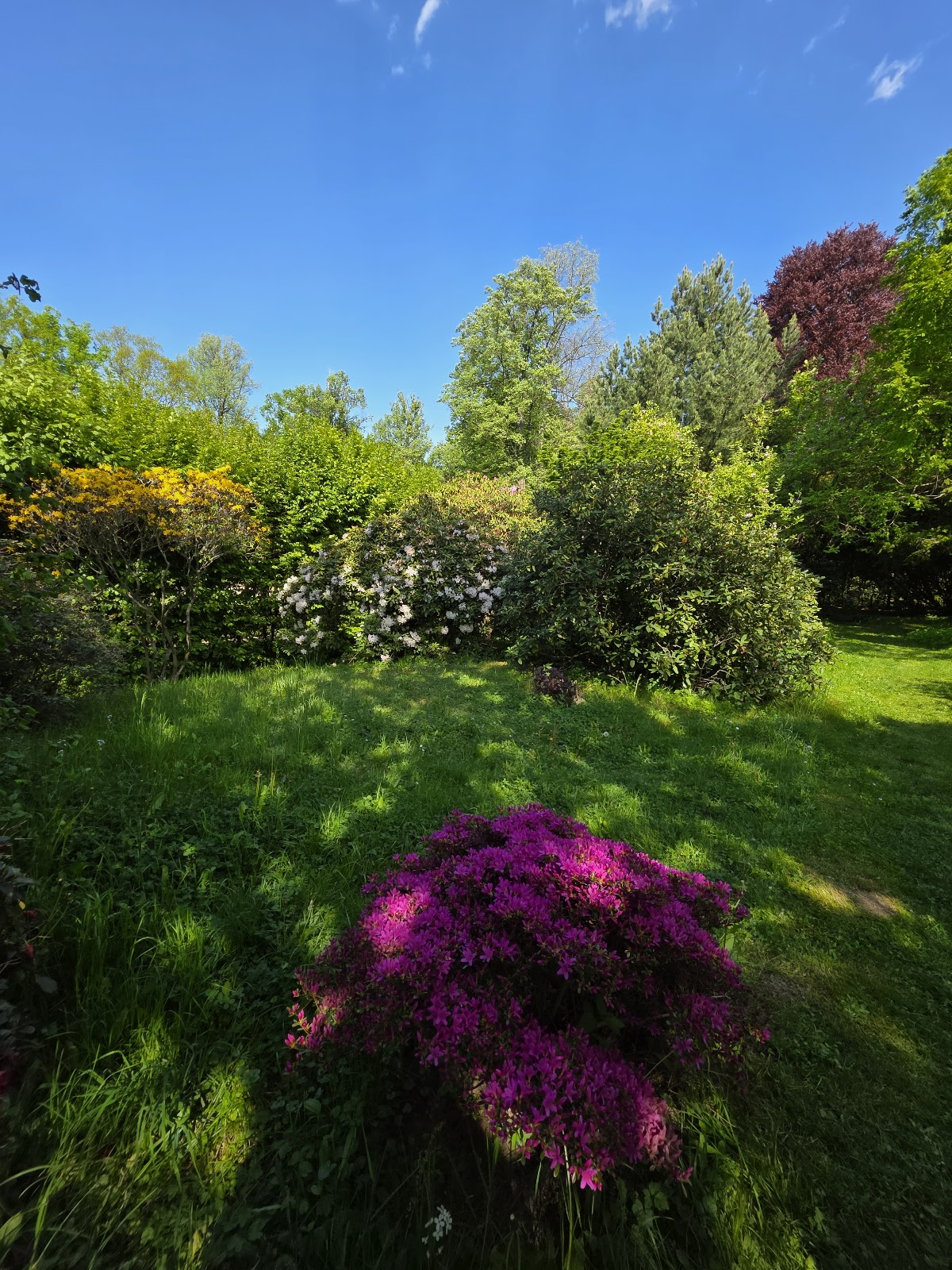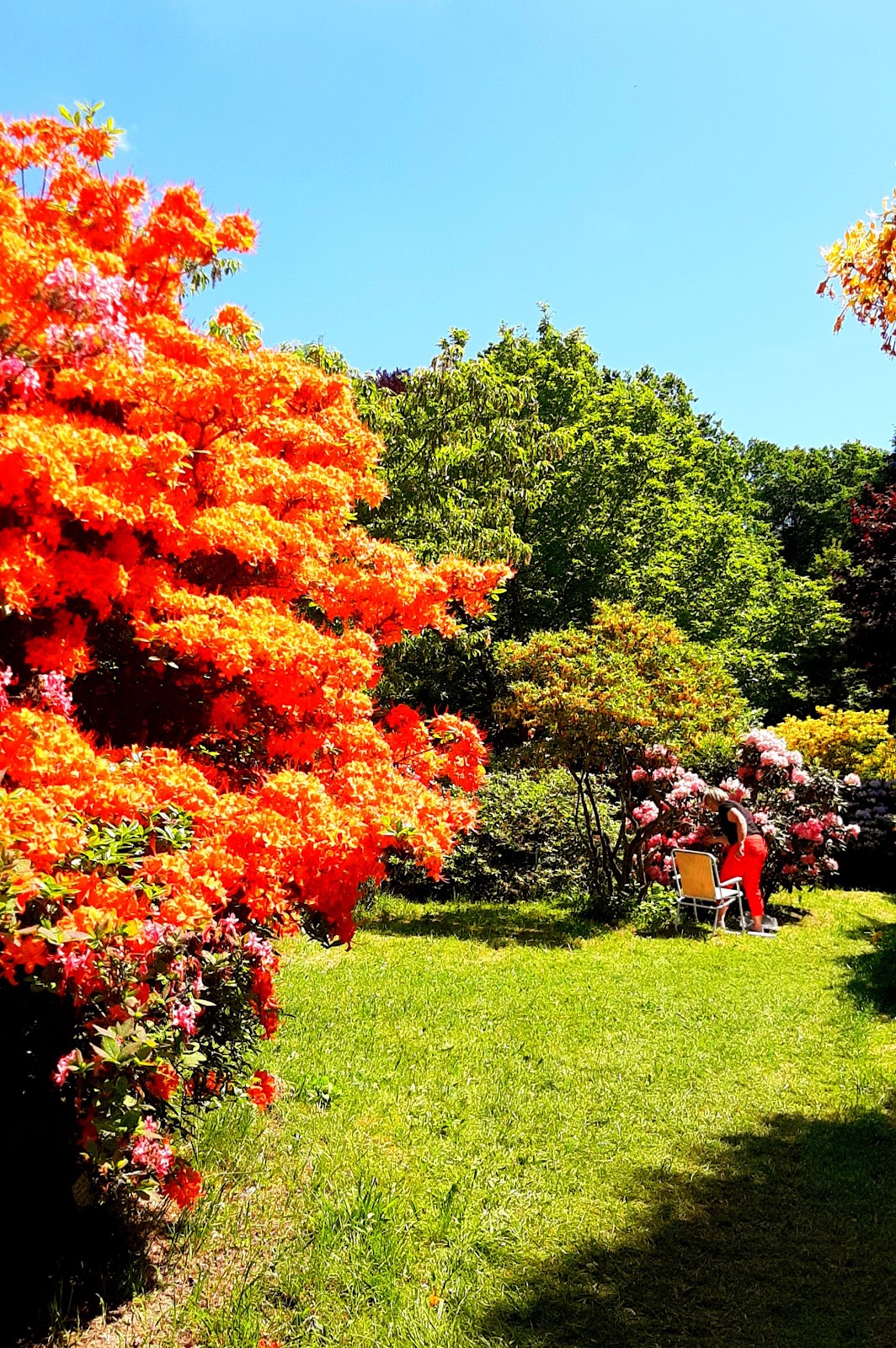Es ist einfach wunderschön. Man sitzt inmitten von blühenden und duftenden Rhododendron und kann die Seele baumeln lassen.