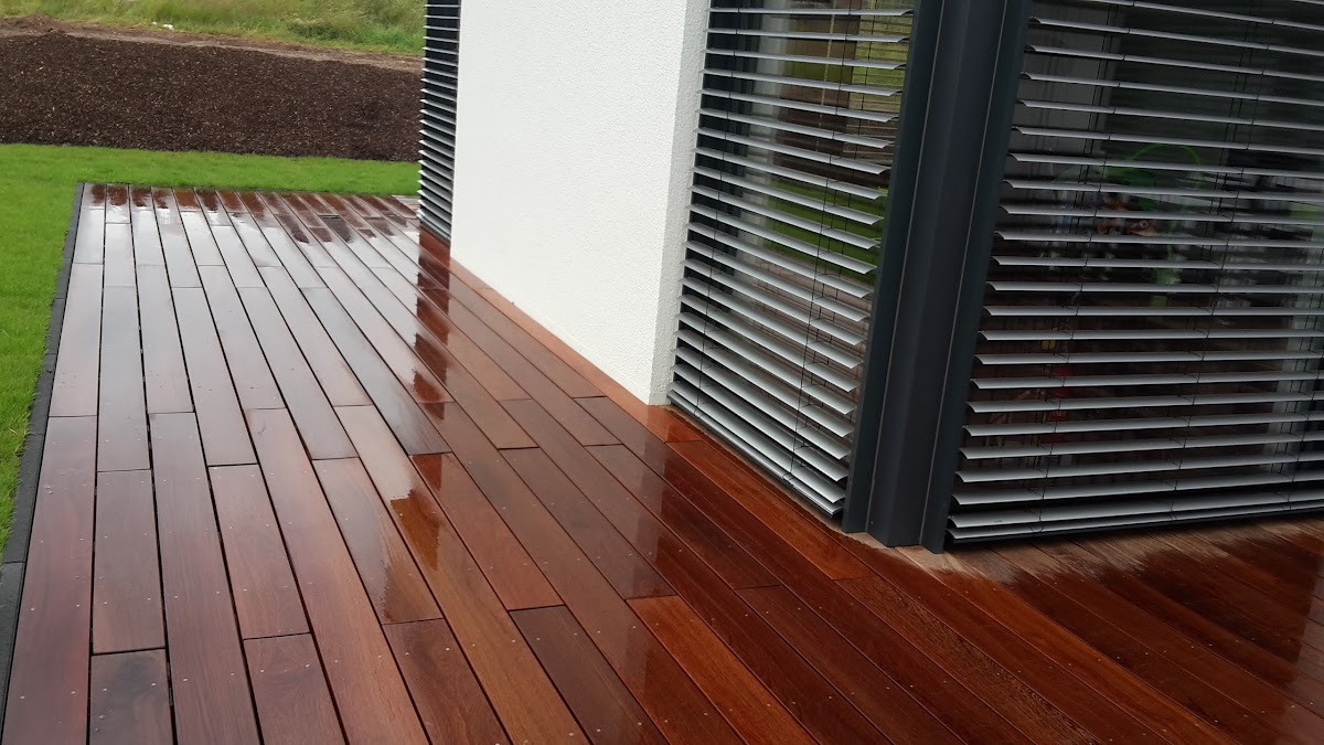 Die Arbeiten wurden insgesamt gut ausgeführt, also die Terrassenplatten wurden sauber verlegt. Bei der Bambusterrasse wurde allerdings eine Holzfarbe ohne Absprache gewählt, was meiner Meinung nach nicht sein dürfte, vor allem, da im Kostenvoranschlag stand, die Farbe sei wählbar. Der Kostenvoranschlag war knapp 20% billiger, als die zu zahlende Endrechnung, was angeblich am falschen Ausmessen der bereits bestehenden Terrasse lag. Dies wurde von mir hingenommen, da der Kontakt eigentlich immer recht freundlich und der Chef grundsätzlich zuvorkommend war. Als ich jedoch nach dem Winter das erste Mal die Bambusterrasse betreten habe und den von den Arbeitern darauf gestellten Sonnenschirm auf die Steinterrasse umgestellt habe, ist ein unschöner Fleck sichtbar geworden. Auf Nachfrage, was dies sei, wurde mir mitgeteilt, dass es ein Pilz sei, den ich mit einem Siliziumkarbid Besen entfernen könne. Die gerade einmal 5 Monate alte Terrasse sei angeblich nicht genug geölt worden... Dabei stand auf der Rechnung, die Dielen seien vorgeölt, und mir wurde nicht mitgeteilt, dass ich dies noch einmal vor dem Winter selber machen müsse... (Wieso auch, die Terrasse sollte ja bereits geölt sein...?) Den Wunderbesen habe ich sogleich bestellt, das Entfernen des Pilzes ist mir damit jedoch nicht gelungen... Des Weiteren sollte die angekündigte Ansaat des Rasens, die bei der Besichtigung als äußerst wichtig angepriesen und im Kostenvoranschlag vorgesehen war, erst im Frühjahr erfolgen, da aufgrund des Laubs eine Ansaat im Oktober im Keim erstickt worden wäre. Nach mehrmaligem Nachfragen, und dies bereits seit Februar, wurde mir im Mai schlussendlich mitgeteilt, dass ich den Rasen selber säen solle. Dies leuchtet mir auch ein, da aufgrund der Arbeiten die Hälfte des Grundstücks mit Kieselsteinen und anderen Steinabfällen übersät wurde und keine Firma für die im Kostenvoranschlag verrechneten 200 Euro (für Saatgut) diese Arbeit verrichten würde. Leider sind mir die Steine erst nach dem Entfernen des Laubs aufgefallen, sonst hätte ich die Rechnung erst ganz bezahlt, nachdem der Rasen wieder in Ordnung gebracht worden wäre. So bleibt mir nun ein mit Steinen gespicktes Unkrautfeld und das Teilen meiner Erfahrung in Form dieser Rezension.