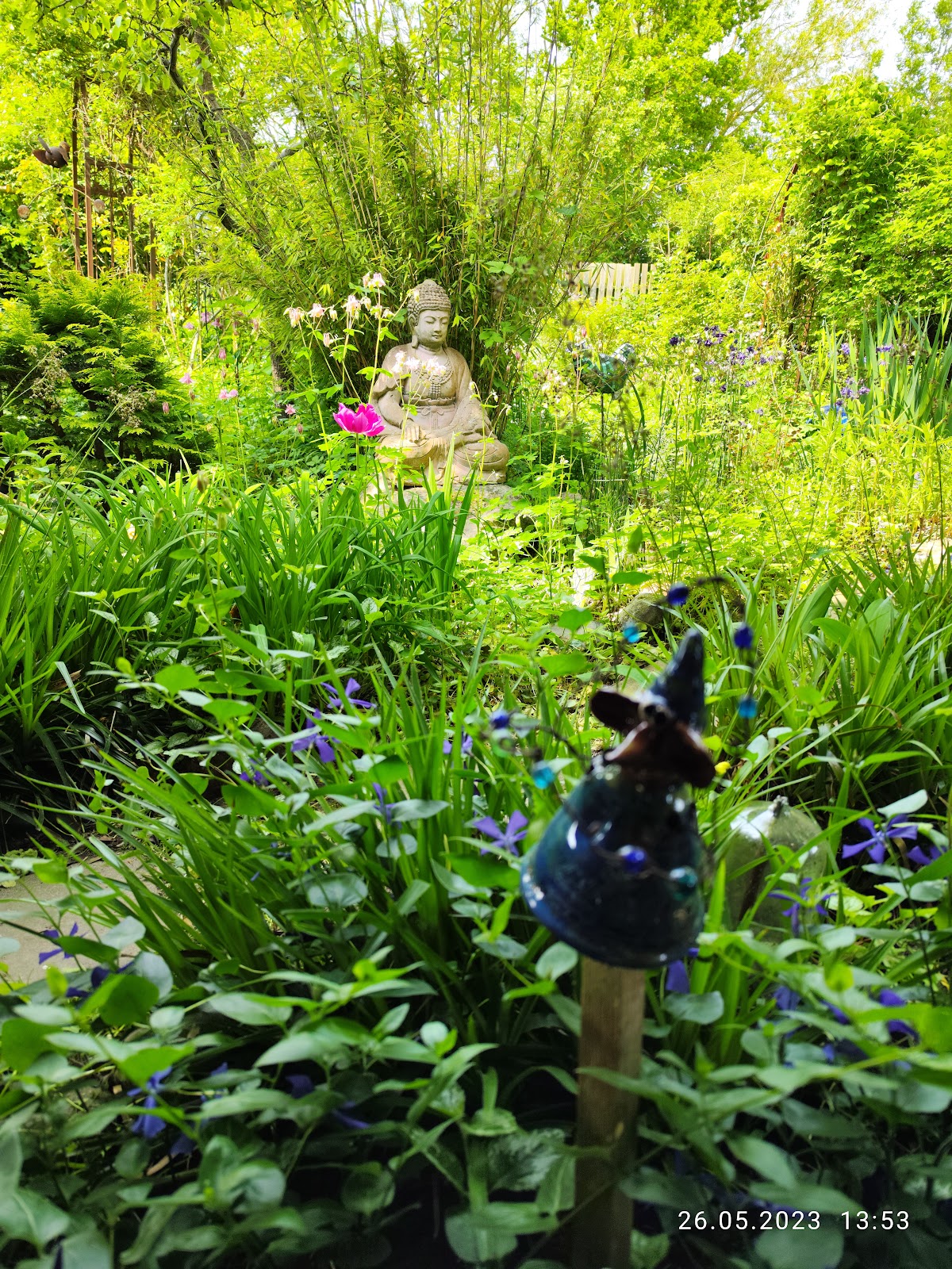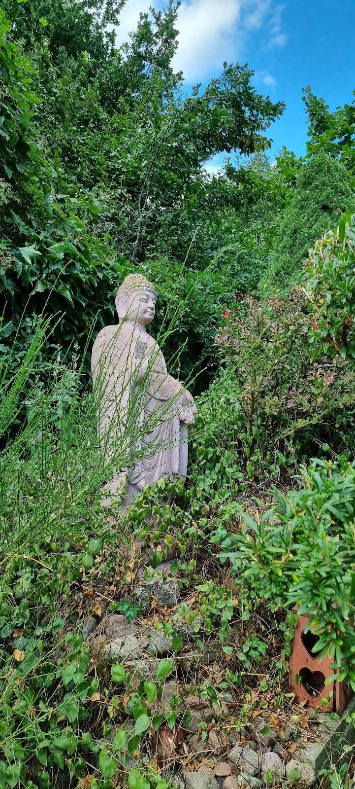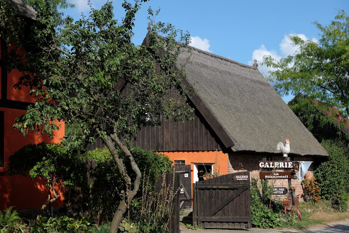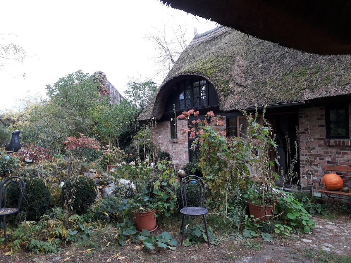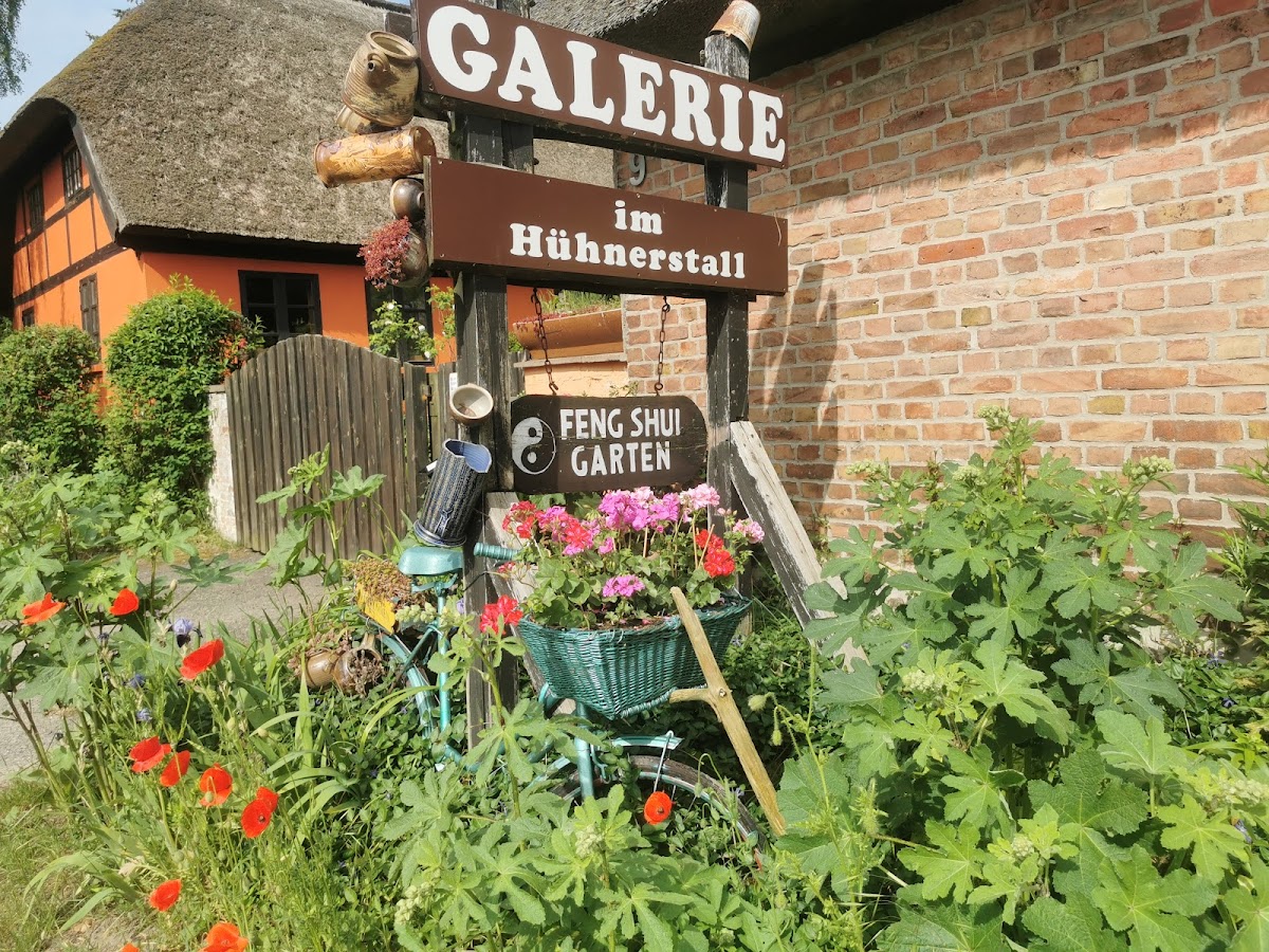 Schöne Bilder in der Ausstellung, auch zum Kaufen mit kleinem verwunschenen Garten. Ein Ort der Ruhe und Gelassenheit. Vieles darf hier einfach wachsen.