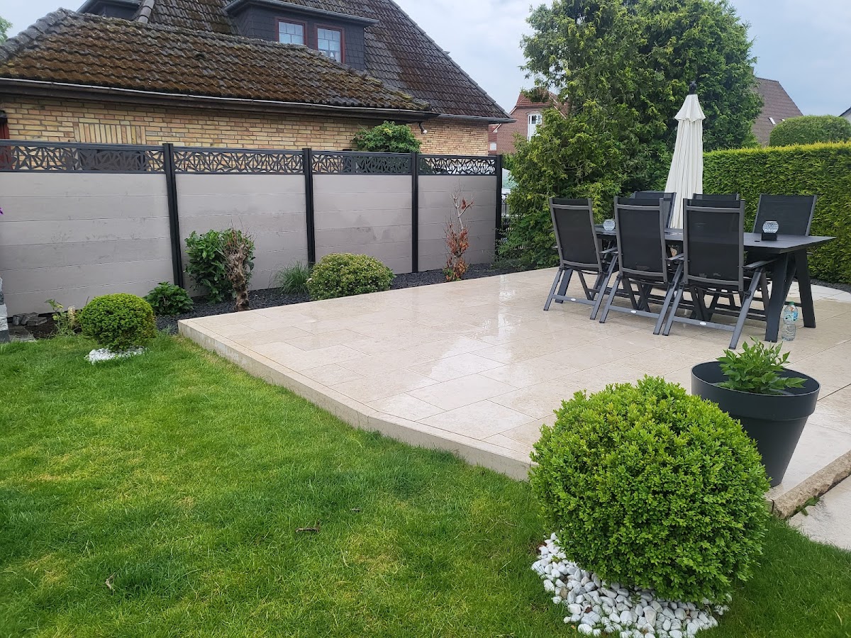 Es wurde unser Vorgarten neu gestaltet, mit Steinabtrennungen, Rollrasen verlegen, Thuja Bepflanzung, Erderhöhung, Rindenmulch und Auslegen von Unkrautfliess. Es lief alles pünktlich und glatt. Alles wurde zu unserer absoluten Zufriedenheit ausgeführt. Eine sympathische und zuverlässige Firma die wir 100 % weiterempfehlen möchten. Dankeschön für alles!