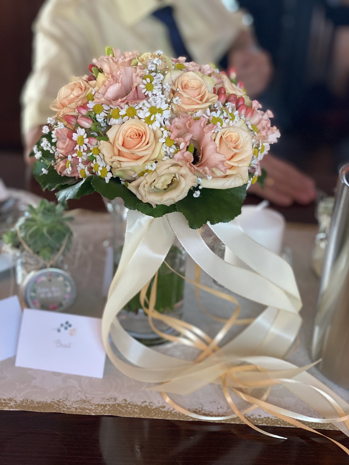 Zu unserer Hochzeit wurden wir sehr gut beraten. Brautstrauß, Tischdeko, Schmuck für Mann und Trauzeugen und sogar mein etwas außergewöhnlicher Wunsch der Gastgeschenke haben sie wundervoll umgesetzt. Schade, dass man nur einmal diese Menge an Blumen braucht 😄 Vielen lieben Dank für den freundlichen Service und die tolle Umsetzung!!!