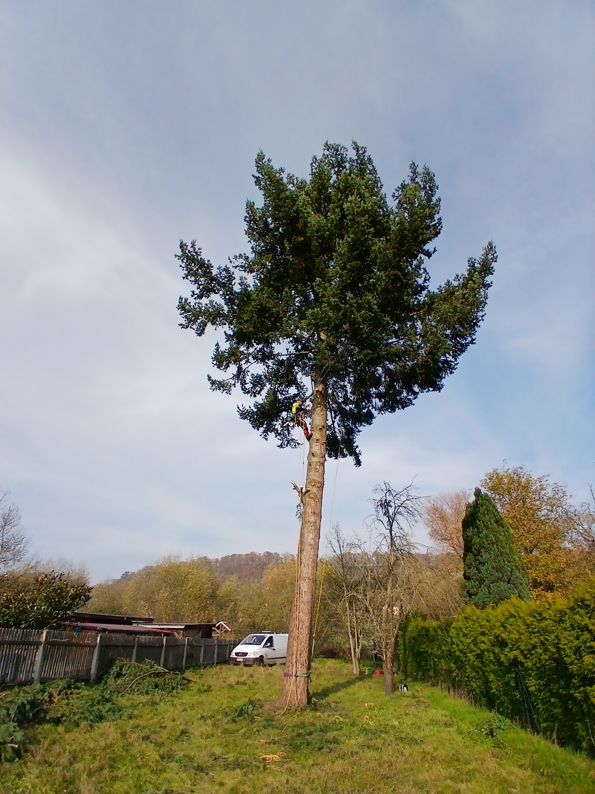 Nach einem schweren Sturm kam bei mir ein großer Ast vom Baum und beschädigte meinen Zaun. Daraufhin suchte ich jemanden, der mir meine Blume beschneidet, da man diese nicht mit einer Hebebühne oder sonstigen erreichen kann, bin ich durch das Internet an Tree Jumper gekommen. Habe mich sofort gemeldet und wenige Stunden später war Michael vor Ort, um sich der Sache anzunehmen. Bekam direkt eine Woche später einen Termin, trotz vollen Terminkalender. Die Arbeit wurde sehr sorgfältig und schnell erledigt. Bin sehr zufrieden mit seiner geleisteten Arbeit und würde ihn jeder Zeit weiterempfehlen, gerne wieder.