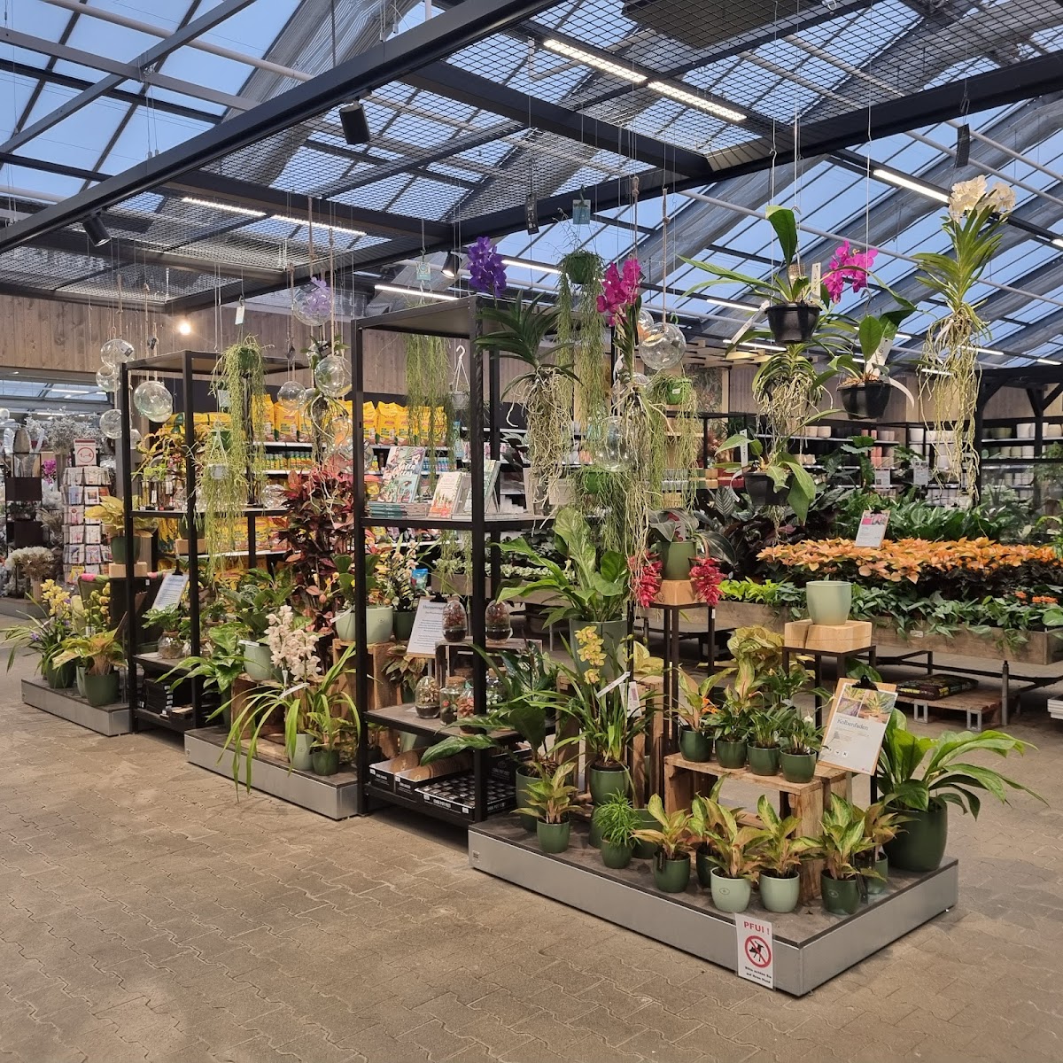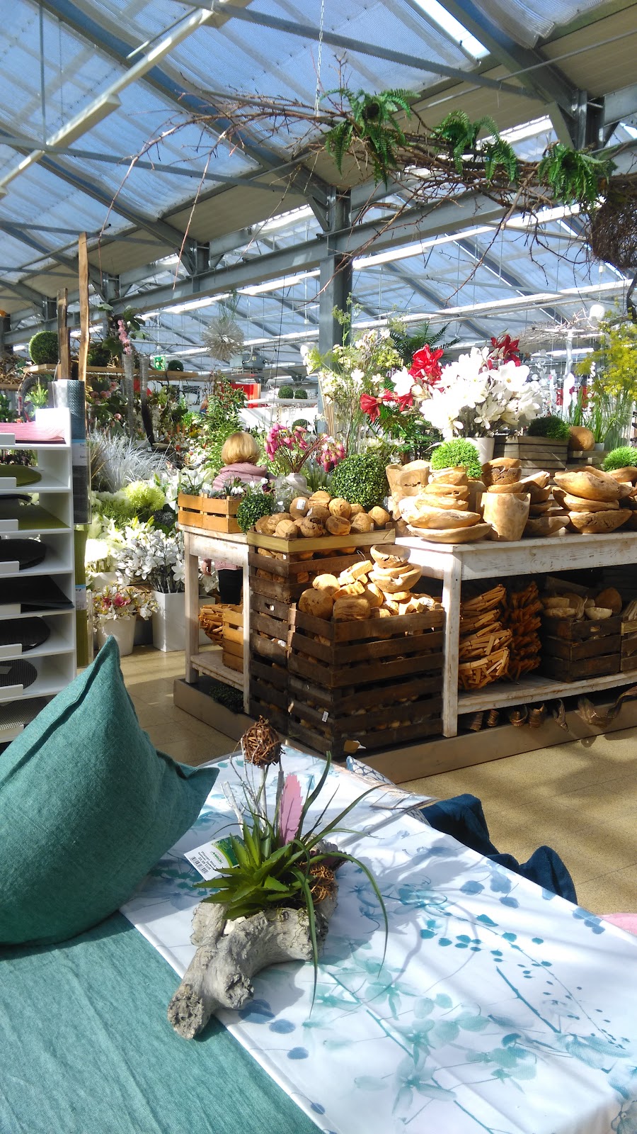 Es gibt eine sehr große Auswahl an Pflanzen und alles was dazugehört. Dazu noch Ourdoormöbel und alles für das Leben draußen im Sommer. Für Bastelfans gibt es eine große Bastelabteilung, auch mit Farben namhafter Hersteller, somit nicht nur für den Hobbybereich, sondern eine wirkliche Künstlerabteilung. Einen sehr großen Bereich nimmt auch die Dekoabteilung ein. Hier wird jeder fündig, da viele Einrichtungsstile und Trends vertreten sind. Die Toiletten sind sauber und der Gastrobereich ist großzügig. Das Angebot an Speisen und Getränken ist sehr gut. Ganz toll ist natürlich der Außenbereich mit schönem Spielplatz und der Möglichkeit, draußen zu speisen. Ein Besuch lohnt sich wirklich absolut. Man kann sich stundenlang dort aufhalten.
