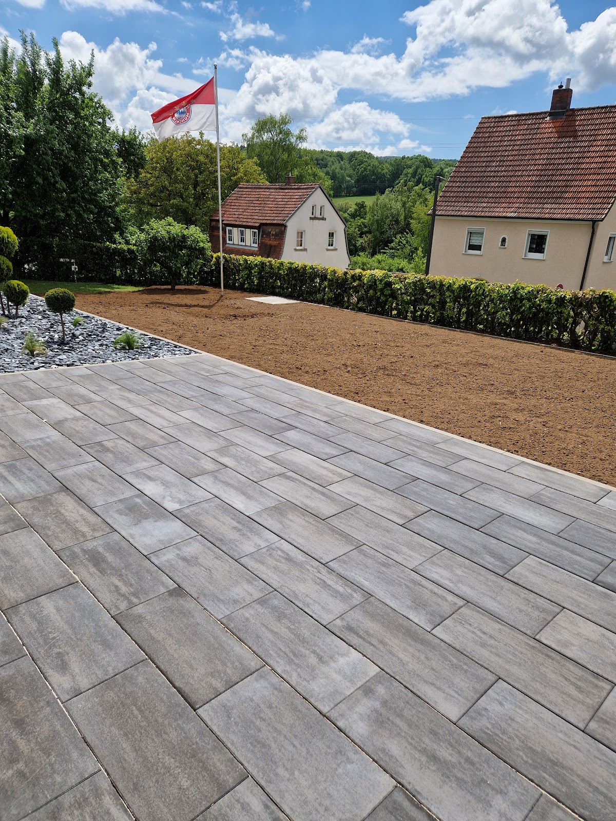 Alles super. Wir haben vor unserem Haus ein Stück pflastern lassen, damit wir dort eine Fahrradgarage aufstellen können. Freundlich, schnell und unkompliziert. Wir sind sehr zufrieden, Dankeschön 😊