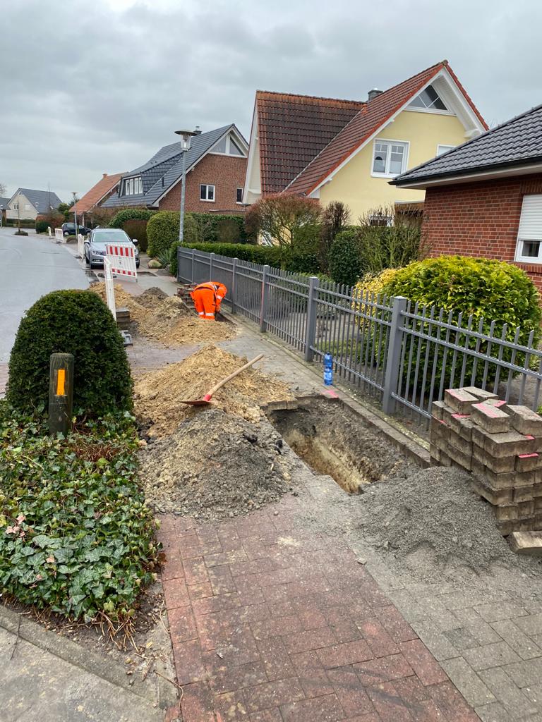 Heute wurden bei uns das Leerrohr für den Glasfaseranschluss verlegt. Die Mitarbeiter waren freundlich, pünktlich, die Straße wurde vernünftig abgesperrt und die einzelnen Schritte wurden kurz ab und besprochen.