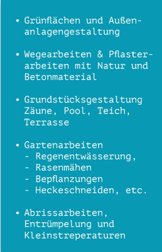 Wir haben die Dienste von Herrn Wangler sehr gern in Anspruch genommen, mit der fachgerechten und schnellen Ausführung seiner Arbeiten waren wir sehr zufrieden. Wenn neue Projekte rund ums Haus oder den Garten bei uns anstehen, werden wir mit Sicherheit wieder die Dienste von Herrn Wangler in Anspruch nehmen.