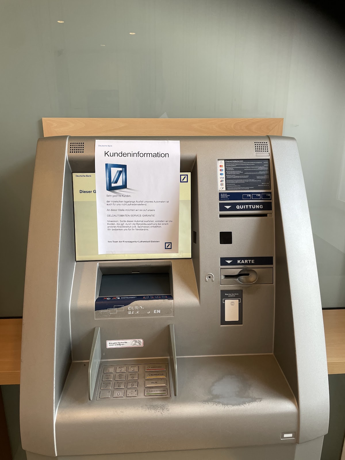 Ist die Deutsche Bank Pleite? Konnte gestern weder Geld abheben noch Überweisungen tätigen weil diesbezüglich die Automaten nicht funktionierten. Geld einzahlen und Auszüge drucken hätte man können. Das war schon des Öfteren!!!