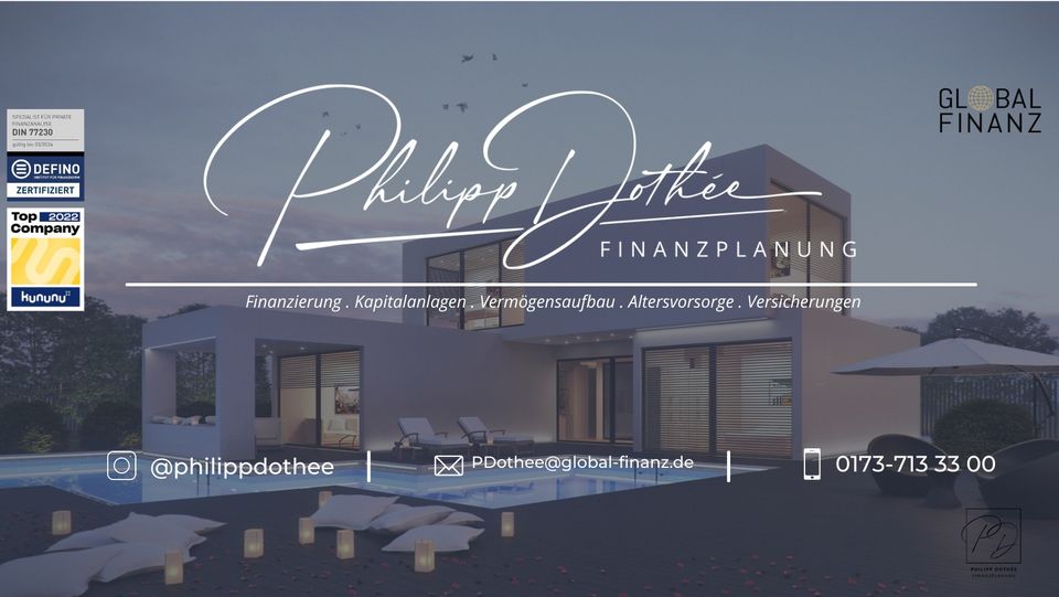 Interessierte erhalten ein kostenloses Erstgespräch – vereinbaren Sie jetzt einen Termin und lassen Sie sich von der PHILIPP DOTHÉE - Finanzberatung & Baufinanzierung unverbindlich beraten.