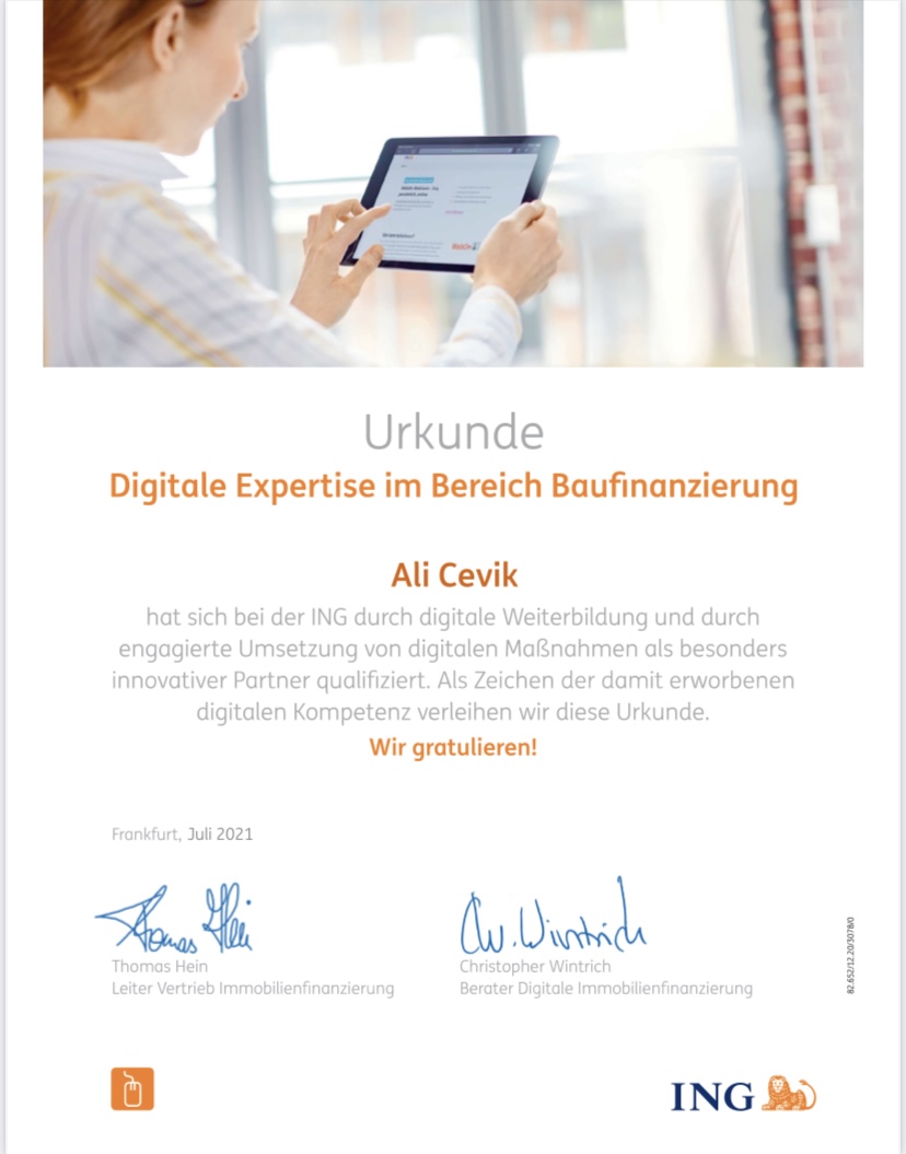 Herr Cevik ist ein sehr kompetenter und netter Baufinanzierer. Durch seine Erfahrung und Expertise konnte ich bestmöglich beraten werden, und er ist auf all meine Wünsche eingegangen. Man merkt, dass er weiß, wovon er spricht, da er selbst mehrere Immobilien besitzt und einen daher sehr gut versteht. Ich kann es jedem wärmstens empfehlen, sich von ihm beraten zu lassen – Sie werden es nicht bereuen!