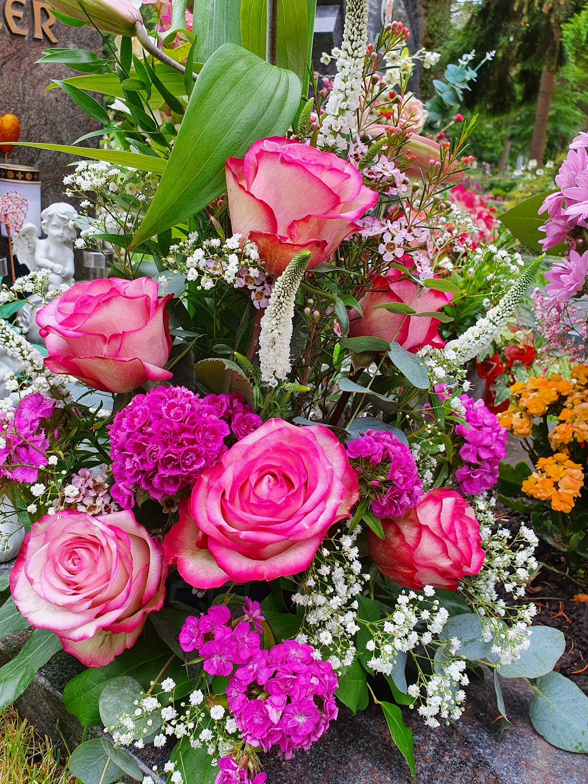 Wunderbares Blumenmeer für unserer Hochzeit Die Beratung beim Vorbesprechen der Blumen war freundlichen und unterstützend. Die Blumenarrangements wurden nach unserer Vorstellungen umgesetzt und konnten pünktlich zum vereinbarten Zeitpunkt von uns abgeholt werden. Neben den gefüllten Blumenvasen haben wir auch den Brautstrauß, Armbänder für die Damen und Ansteckblumen für die Herren bestellt. Alles wurde sehr schön gearbeitet und hat für viel Freude gesorgt.