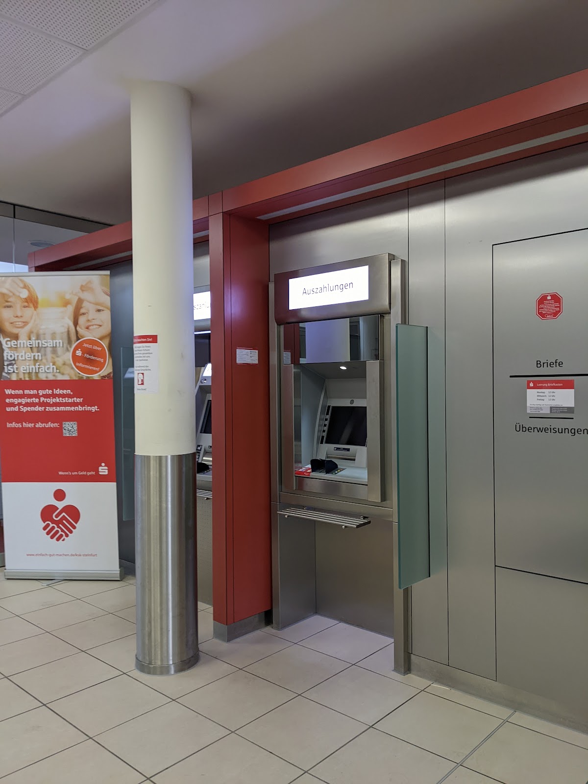 Es wurde technisch aufgerüstet, zwei neue Geldautomaten wurden Eingebaut. Jetzt kann man auch Geld am Automaten einzahlen! Dann stellt sich die Frage, ob sich das auf die Öffnungszeiten auswirken wird?