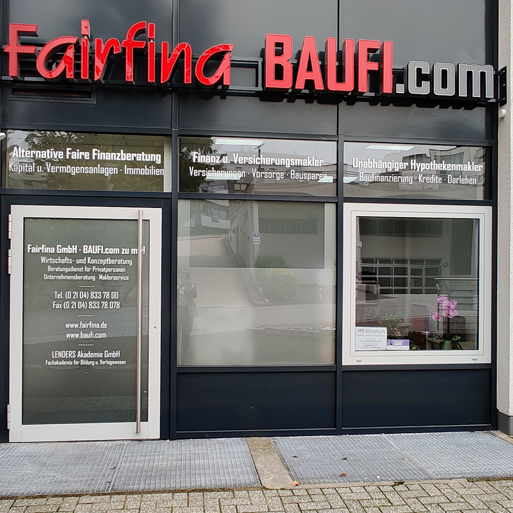 Wir können die Firma Fairfina, Herrn Lenders und sein Team zu 100% weiterempfehlen. Bei Finanzierung einer Immobilie, beim Verkauf einer Immobilie, bei der Suche nach Versicherungen, bei dem Thema Geldanlagen ist diese Firma die erste Anlaufstelle. Wir arbeiten seit 10 Jahren mit Herrn Lenders zusammen. Wir fühlen uns sehr gut aufgehoben. Alle Ängste waren unberechtigt. Vielen Dank! ***** 5 Sterne Service!