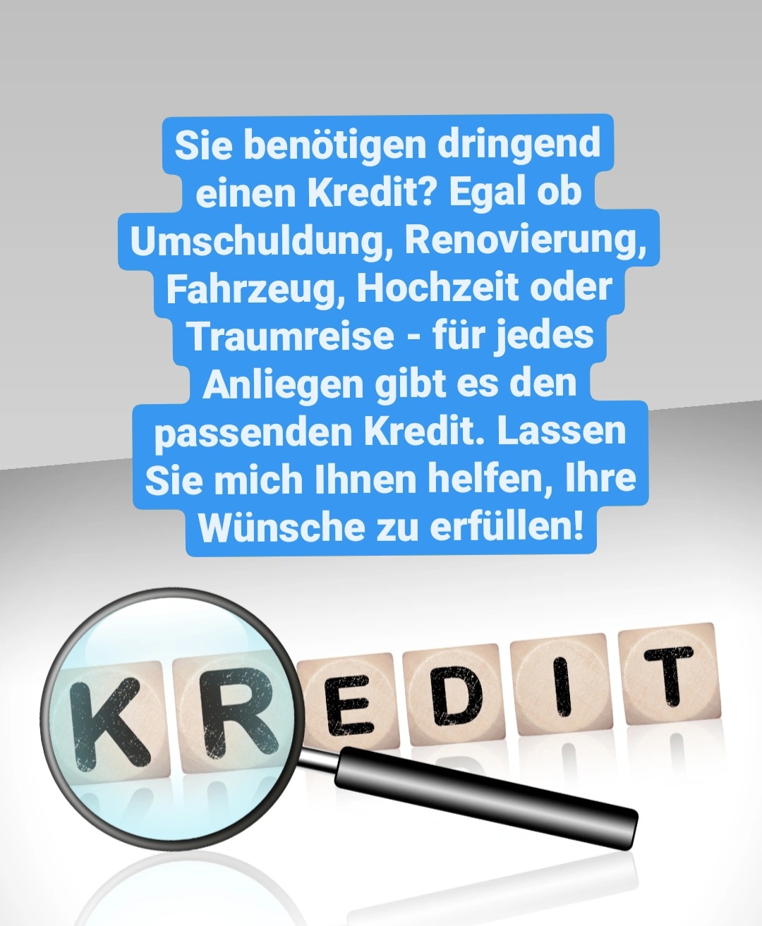 Sehr kompetent, hilfreich und sehr nett. Herr Cam hat mir bei einem Privatkredit geholfen und innerhalb von paar Tagen hatte ich scho mein Geld. Ich kann ihn mit ruhigen Gewissen jeden weiterempfehlen. Vielen Dank