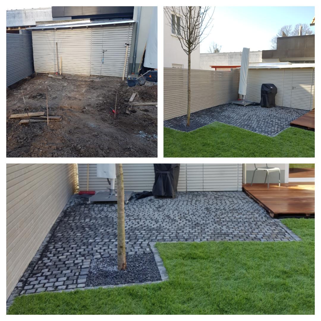 Herr Peter und sein Mitarbeiter haben in der vergangenen Woche unsere neue Terrasse und Holzstand gepflastert. Zum Einsatz kamen große und kleine alte Basaltsteine (Kopfsteinpflaster), die die Beiden professionell verlegt haben. Für die Kombination der unterschiedlichen Größen wurde eine super Lösung vorgeschlagen und umgesetzt. Im Vorfeld wurden wir stets über unseren Termin auf dem Laufenden gehalten. Ausnahmslos zu empfehlen, jeden Morgen pünktlich und immer freundlich! Wir danken sehr!