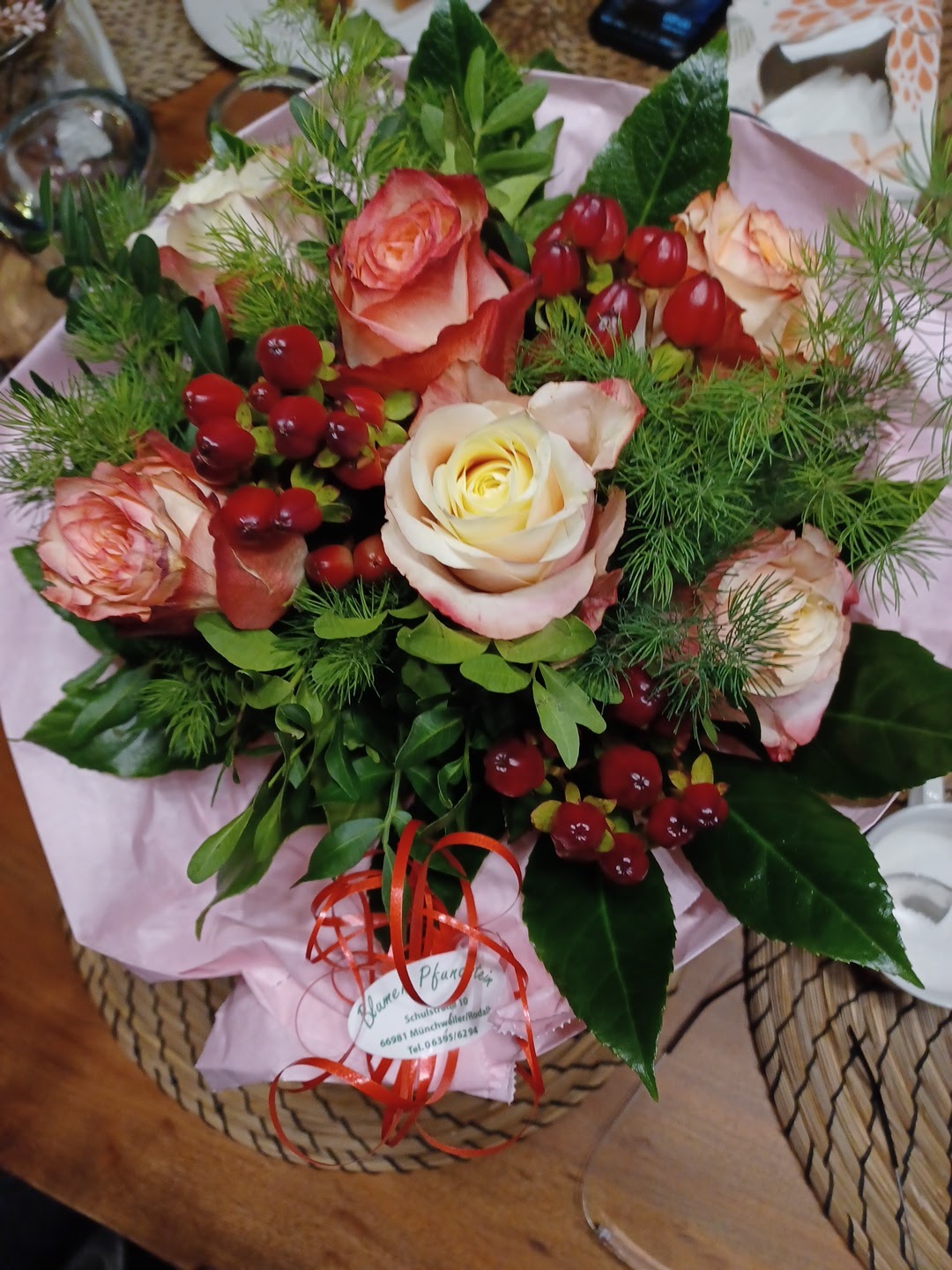 Telefonisch einen Strauss bestellt. Habe vage Angaben gemacht zum Verwendungszweck und meine Preisvorstellung übermittelt. Herausgekommen ist ein wunderschöner Blumenstrauss, der auch bei der Empfangsperson hervorragend ankam. Nach Auslieferung des Strausses wurde mir ein Bild davon geschickt, sowie die Bankdaten des Blumenladens zugesendet. Sehr professioneller Ablauf mit Super Ergebnis. Werde hier sehr gerne weitere Bestellungen tätigen.