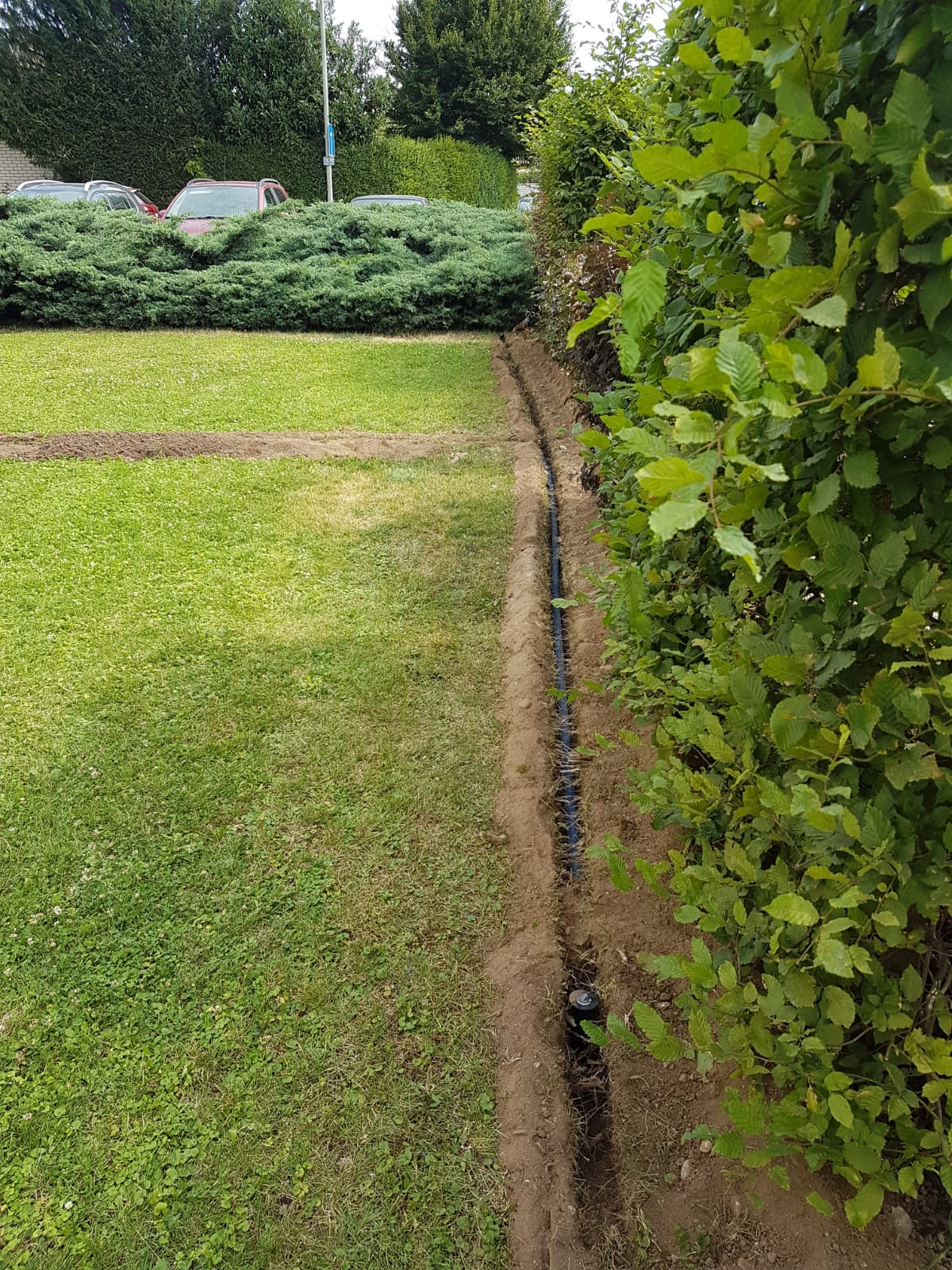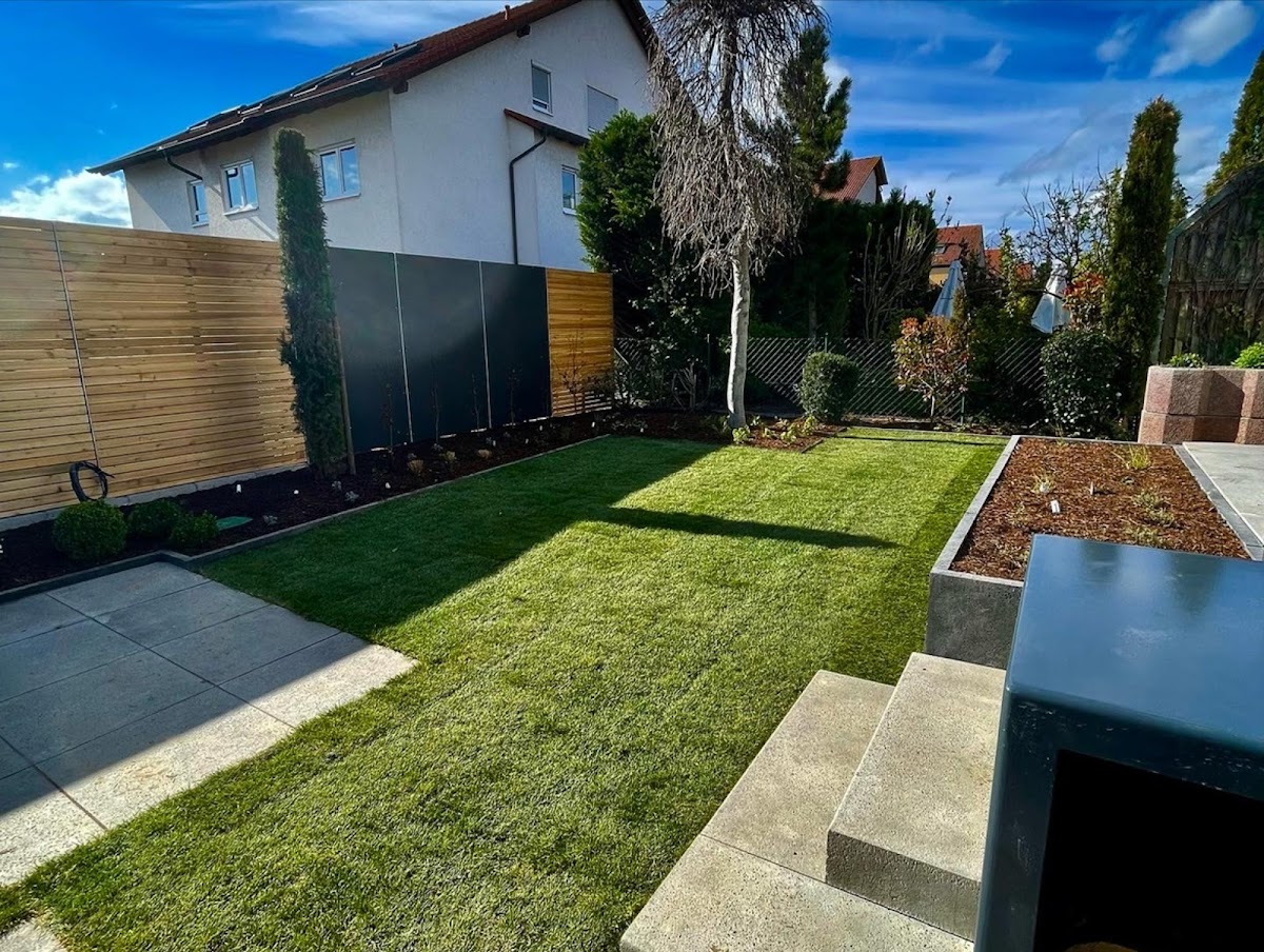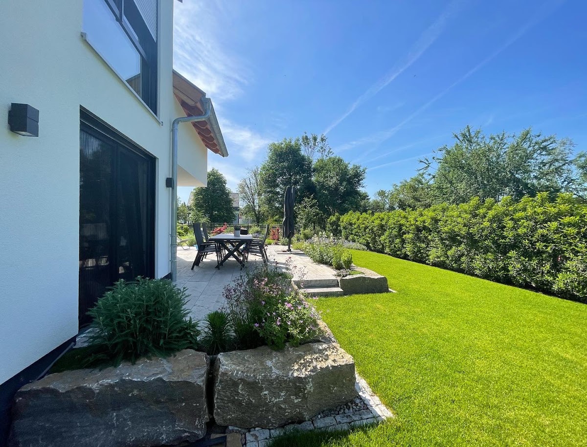 Die Firma GAA legte bei uns einen neuen Rasen mit Beregnungsanlage und Mähroboter an. Mit der Planung und Ausführung der Arbeiten waren wir sehr zufrieden. Besonderen Dank geht an Sebastian, der in glühender Sonne die schwersten Arbeiten erledigte. Mit dem Ergebnis sind wir sehr zufrieden.
