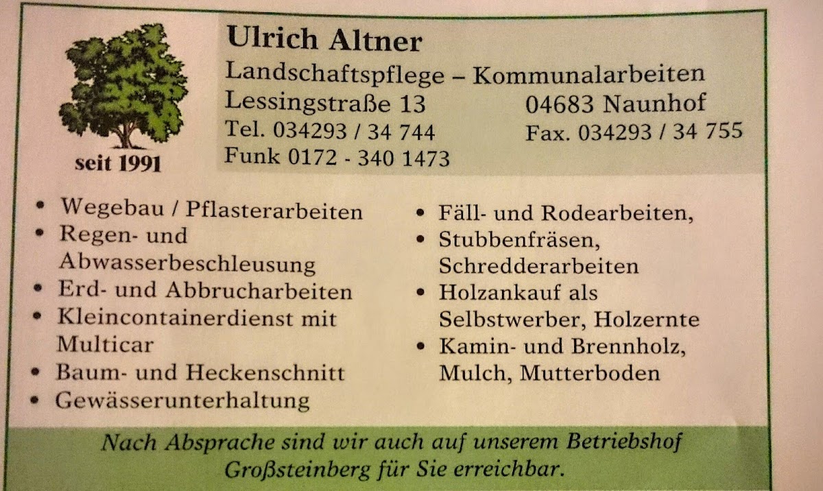 Über Ulrich Altner Landschaftspflege/ Kommunalarbeiten
