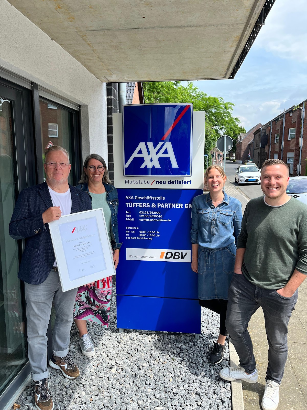 Das Team rund um AXA Tüffers besonders Timo haben es mit ihrem kompetenten Fachwissen geschafft, dass wir nach sehr vielen Jahren wieder Vertrauen in AXA gewonnen haben und unseren Fuhrpark dort versichert haben. Dank präziser Erläuterungen der Gestaltungsmöglichkeiten und auch Weitblick in Sachen Altersvorsorge wurde bereits der erste Schritt gemeinsam getan. Timo ist sehr zuverlässig, gewissenhaft, immer erreichbar und erklärt alles detailliert. Wir fühlen uns sehr gut aufgehoben und freuen uns auch eine gute Zusammenarbeit.