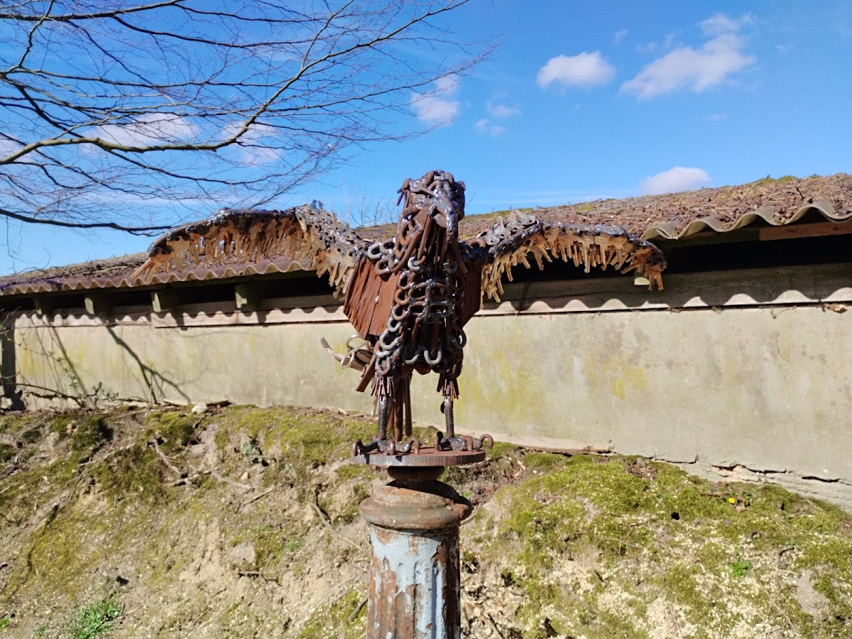 Wunderschöne Handwerks Kunst. Hier gibt es auch Ferienhäuser zu mieten. Einen wunderschönen Urlaub hier verbringen in der Natur 🍄🟫🌳🌲 Ab hier gibt es tolle Wander 🚶 und Fahrradstrecken 🚴.