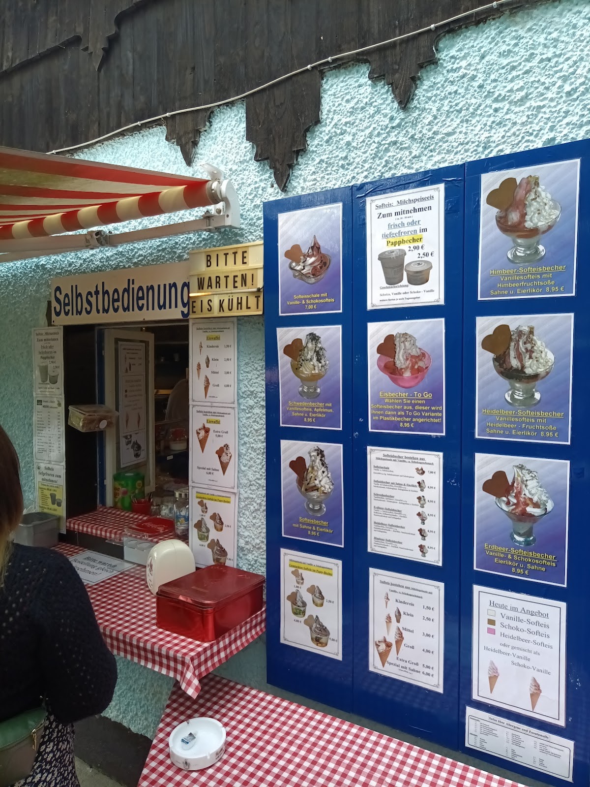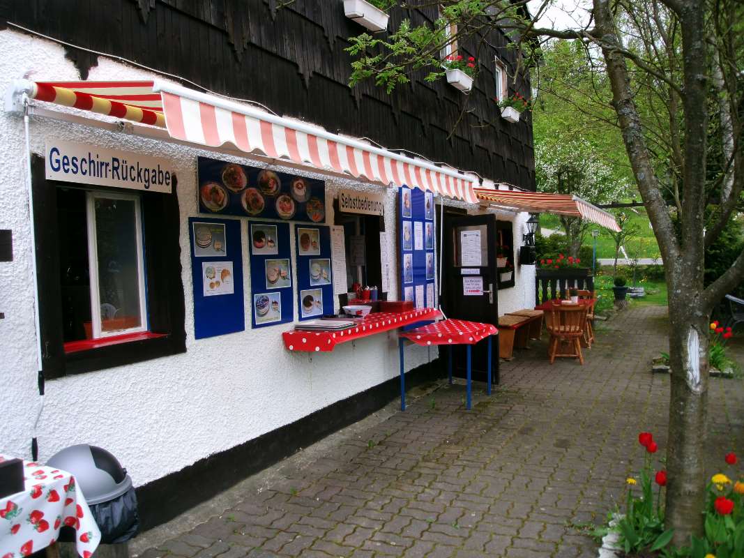 Man wird zunächst von den zahlreichen Hinweisen auf den Schildern abgeschreckt. Das Softeis hat lecker geschmeckt und war preislich voll ok. Die Eisbecher sind einen Tick teurer, ich habe allerdings die Größe nicht sehen können. Von daher keine Wertung möglich. Der Service war für die Gegend schon freundlich, es gab sogar ein „Danke“. Im Garten kann man gemütlich sitzen. Das heutzutage eine Bewirtschaftung ohne (direkte) Gäste-Toilette möglich ist, hat mich überrascht.