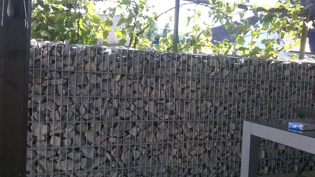 Gabionenbau in unserer Pergola, sauber ausgeführt. Dominic Prax kann man nur weiter empfehlen.