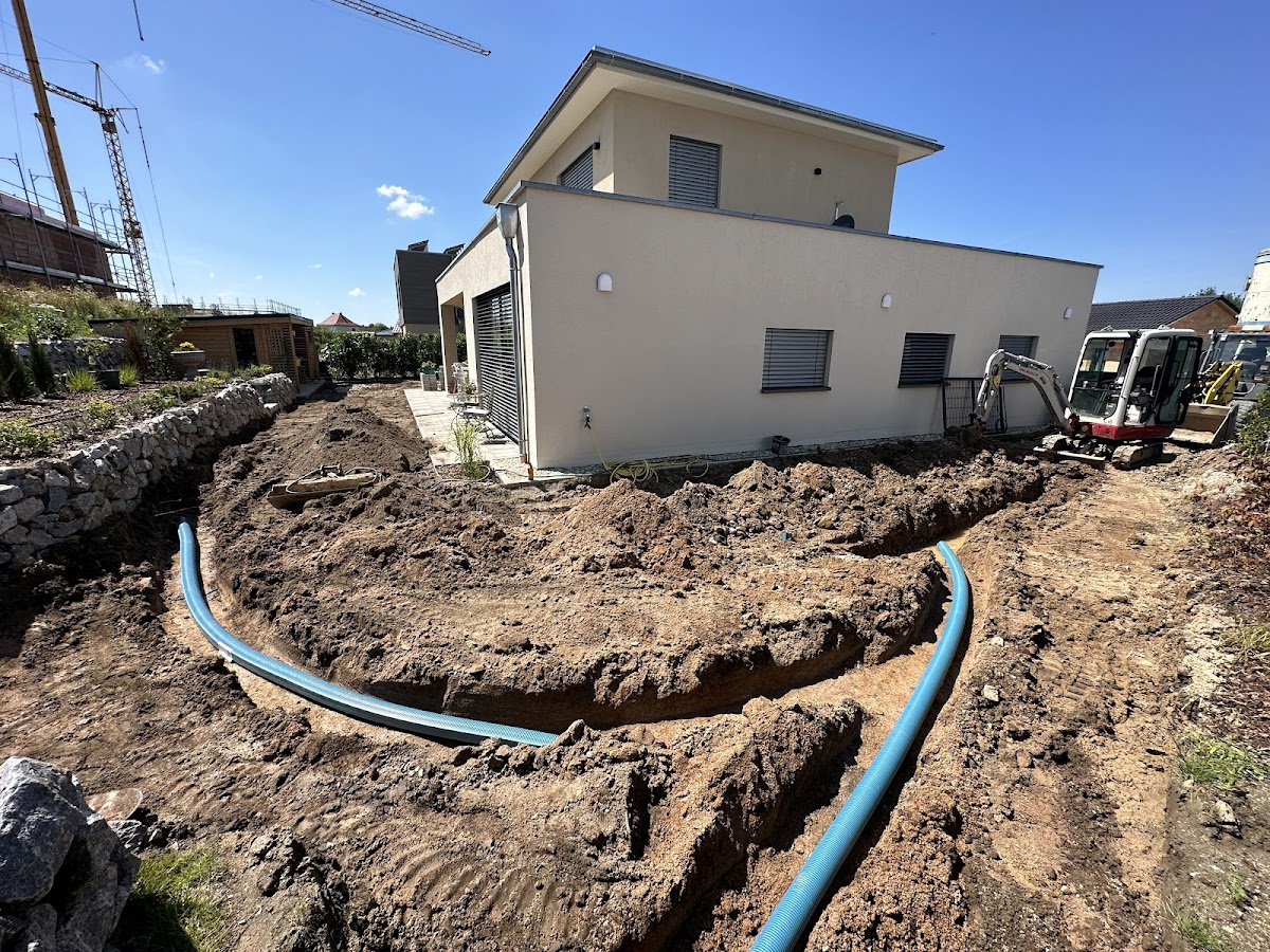 Wir hatten große Probleme bei starkem Regen mit Wasser auf dem Grundstück. Herr Kllokoqi hat das Problem mit dem Austausch der Erde (40 cm tief) und einer Drainage incl. Zisterne gelöst. Das war notwendig, da wir auf einer wasserundurchlässigen Lehmschicht bauen mussten. Wir sind sehr zufrieden mit seiner Leistung und haben bereits nach einem ersten starken Regenschauer die hervorragende Wirkung seiner Arbeiten beurteilen können. Wir bedanken uns für seine Beratung und seinen tatkräftigen Einsatz.