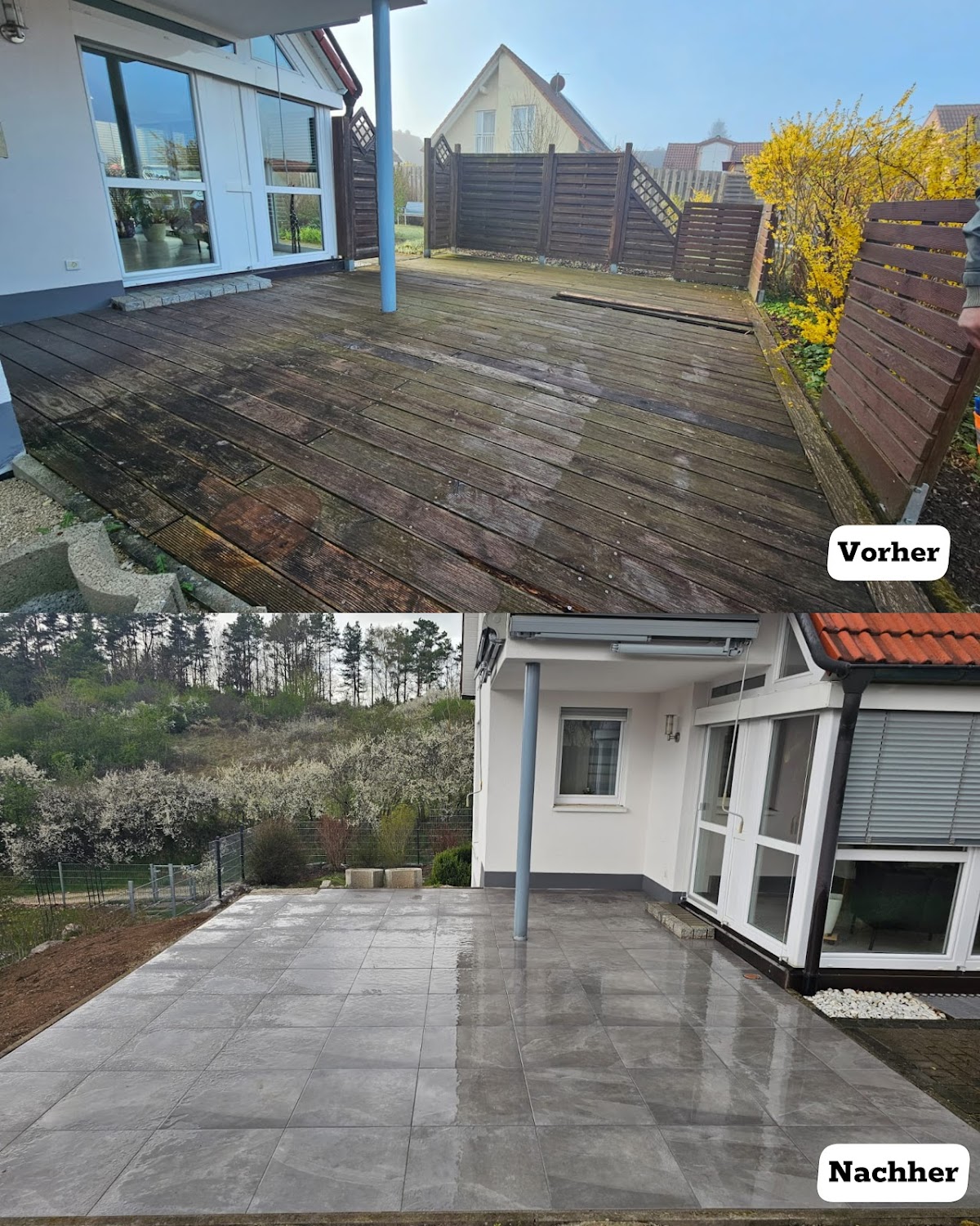 Sehr zufrieden! Der Termin wurde schnell und unkompliziert vereinbart. Die Terrasse wurde zügig und in hoher Qualität fertiggestellt. Das Preis-Leistungs-Verhältnis ist fair, und der Service war sehr freundlich. Auch bei anderen Anliegen wurde mir hilfsbereit zur Seite gestanden. Klare Empfehlung!