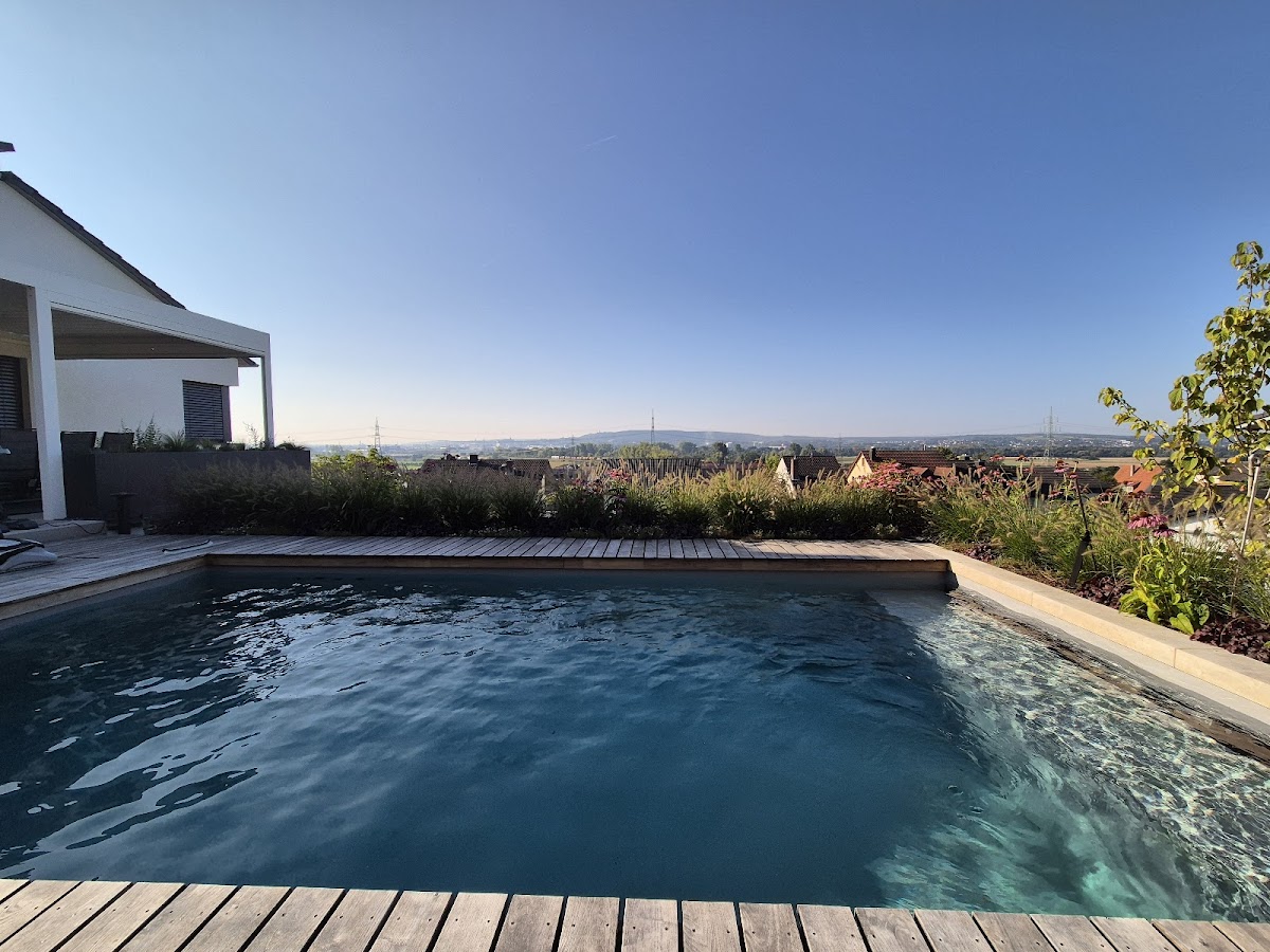 Wir haben mit der Fa. Albrecht unseren Traumgarten verwirklicht! Das war nicht ganz einfach, da es sich um ein eher kleines Grundstück mit Hanglage handelt und unsere Wunschliste einiges an Kreativität vom Albrecht Team abverlangte. Letztendlich haben wir nun genau das, was wir wollten. Ganz besonders gut gelungen ist der Naturpool - er hat die erste Sommersaison gut überstanden und bei allen Familienmitgliedern für Begeisterung gesorgt. Was mich aber wirklich erstaunt: Entgegen aller Erwartungen ist das Wasser noch nie "gekippt", also grün geworden. Es war und ist vom ersten Tag an glasklar, die Filtertechnik erledigt ihren Job also tadellos. Wir möchten uns beim kompletten Albrecht Team nochmals herzlich bedanken - Ihr seid alle super kompetent, fleißig und vor allem immer freundlich!!