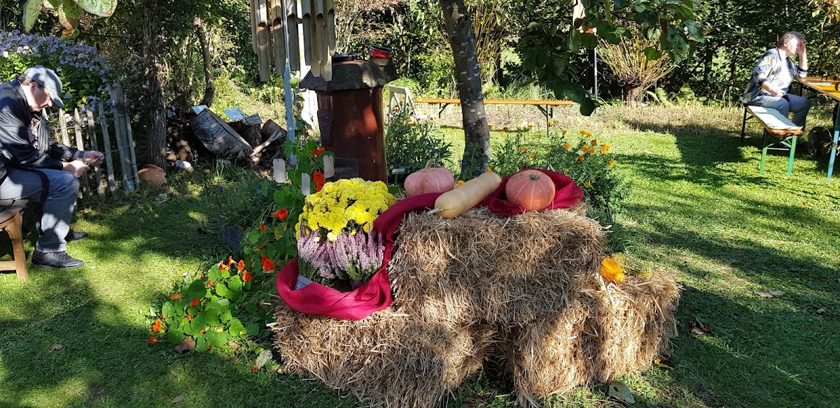 Klein aber fein, liebevoll angelegter Schaugarten, Beete mit Infotäfelchen. Übers Jahr öfters Sonderschauen, ein Besuch ist allemal Wert, wird rege besucht. Diesmal das Thema "alles um den Apfel" fachliche Beratung, wie auch Bestimmung mitgebrachter Apfelsorten. Für leibliches Wohl gab es Kleinigkeiten zu kaufen.