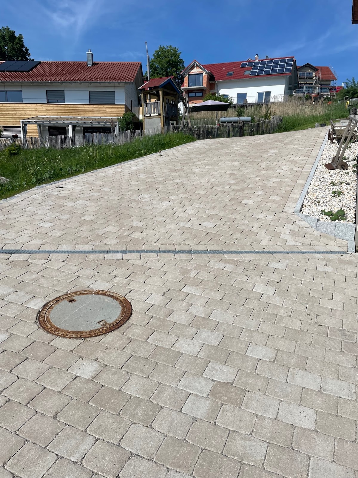 Herzlichen Dank, Dominik und Deinem Team, für die super Arbeit bei uns. In 1 1/2 Wochen um das ganze Haus rum pflastern und zwei Mauern bauen, das Gelände planieren und den Rasen anzusäen ist eine besondere Leistung! Und das auch noch bei über 30 Grad! Dabei seid ihr immer gut drauf gewesen und du hast uns noch anderweitig geholfen. Mit bestem Gewissen empfehle ich euch gerne weiter - wir sind sehr froh, dass ihr unsere Außenanlagen gemacht habt!