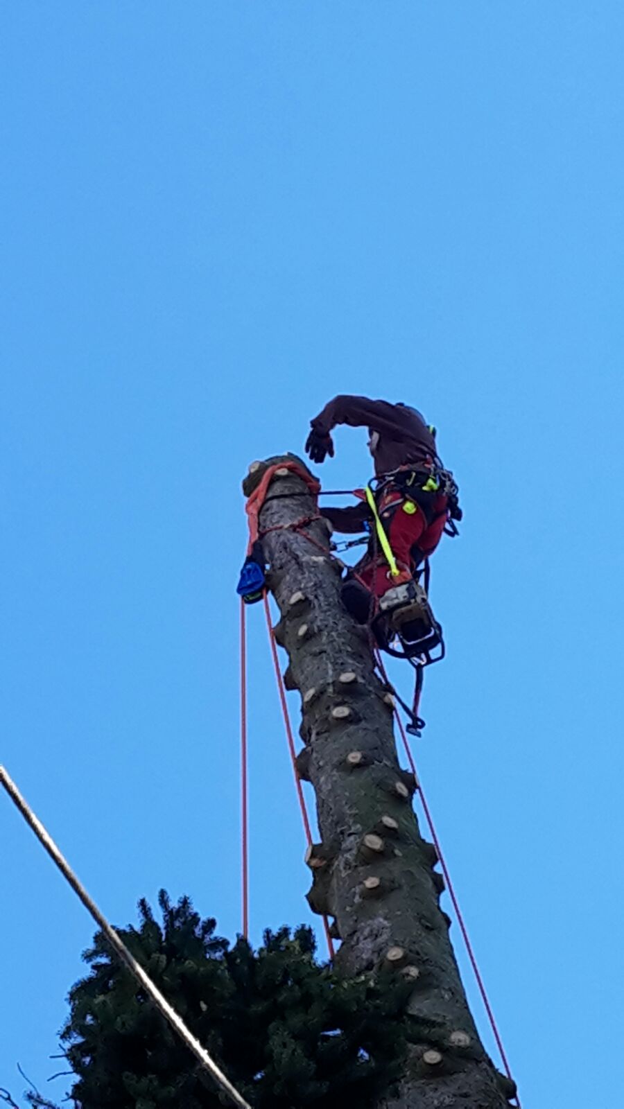 Baumpflege Tobias Geiling, Offenbach, 2023.03: In jeder Hinsicht empfehlenswert: an einer schlecht zugänglichen Stelle im Garten schwierige Baumschneidearbeiten an einer großen Zeder sowie an einem anderen Baum wunschgemäß, gut und zügig erledigt; sehr umsichtig unter Vermeidung von Beschädigungen am Baumstamm (mittels Seilklettertechnik anstelle von Steigeisen) und an einem darunter befindlichen Pavillon sowie Ziersträuchern etc.; den Arbeitsberich sauber hinterlassen. Gutes Preis-Leistungs-Verhältnis 👍🏻