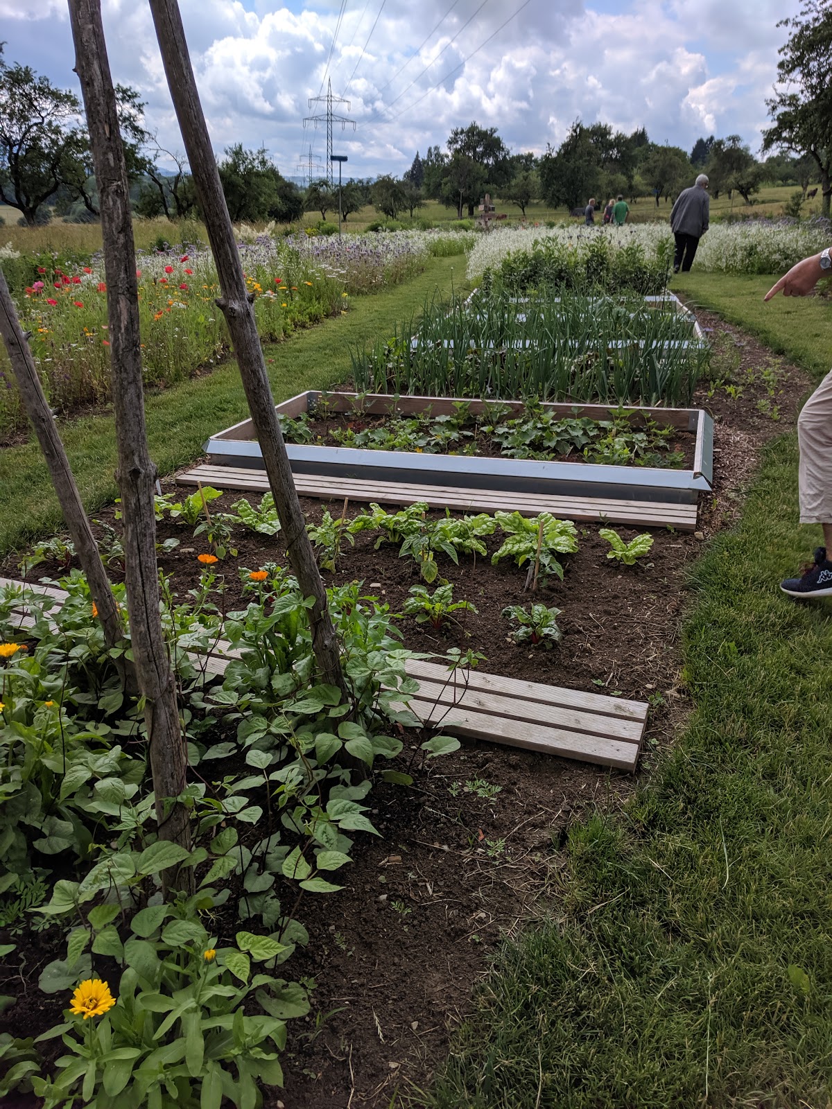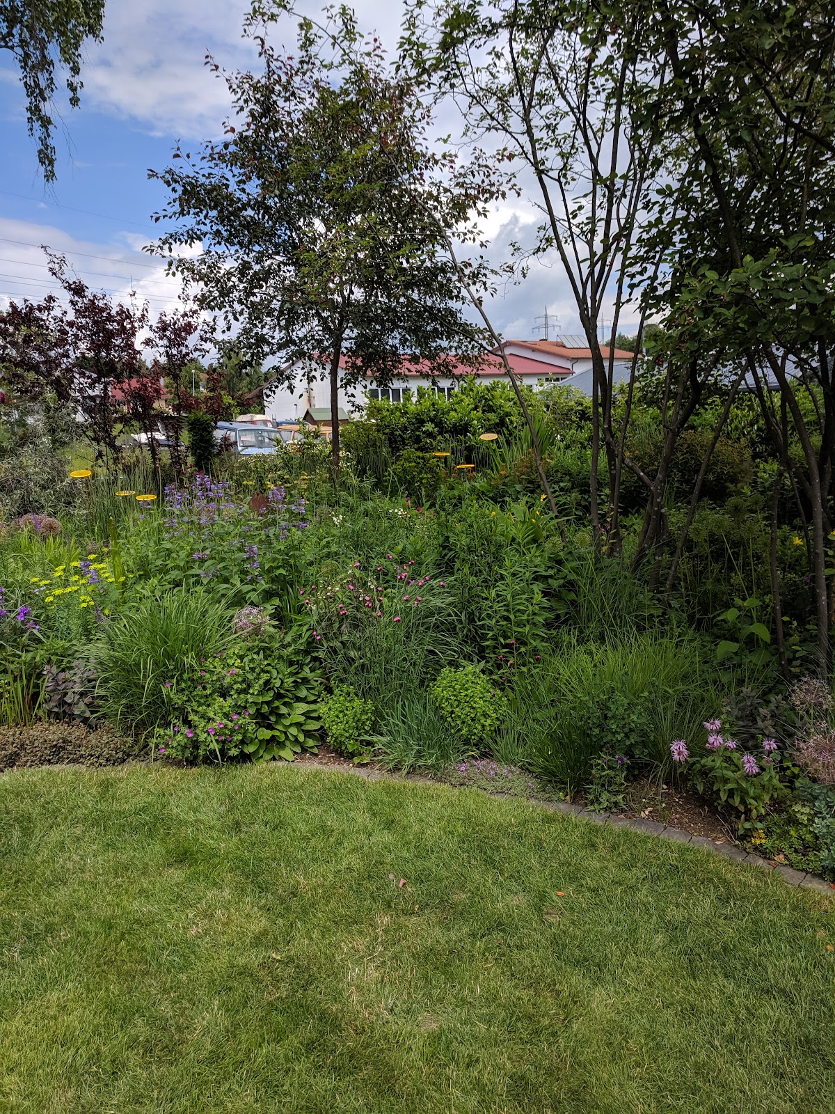Kurz gesagt; diese beiden Gärten sind ganz grosses Kino. Ich war beim Tag der offenen Gärten mit einem Kollegen in den Gärten Funke. Wir sind beide Gärtner und planen und pflanzen Gärten. Der Hausgarten selbst passt unglaublich schön zur strengen Geometrie des Hauses. Auch die Eibenformgehölze, besonders das kleine an der Garage des Mähroboters, zeigen, wie viel Gartenliebe in allem steckt. Die Hostapflanzen in den Gefäßen am Gartenzugang hätten wir am liebsten mitgenommen. Das allerdings, was wir im oberen, ausgelagerten Garten zu sehen bekamen ist phantastisch. Die Größe allein, die Pflanzenvielfalt und Zusammenstellung lässt einen staunen. Was einen auch beeindruckt ist die Sauberkeit des Gartens. Natürlich wird für einen solchen Tag das Unkraut von fleißigen Händen entfernt, aber ich würde sofort erkennen, wenn sonst ein hoher Unkrautdruck da wäre. Ich bedanke mich herzlich bei der Familie Funke, dass sie so etwas geschaffen, und manchmal für die Öffentlichkeit zugänglich gemacht hat. Peter Sanzenbacher