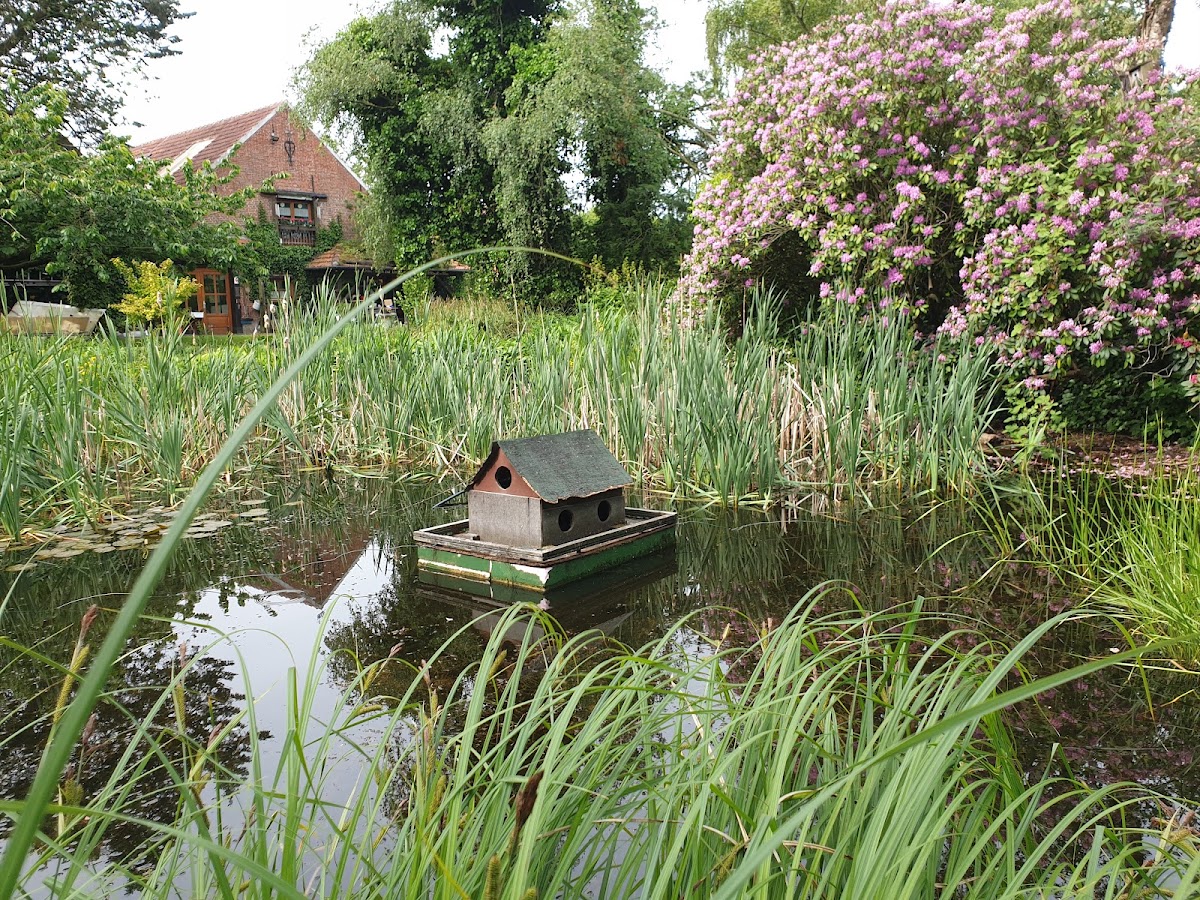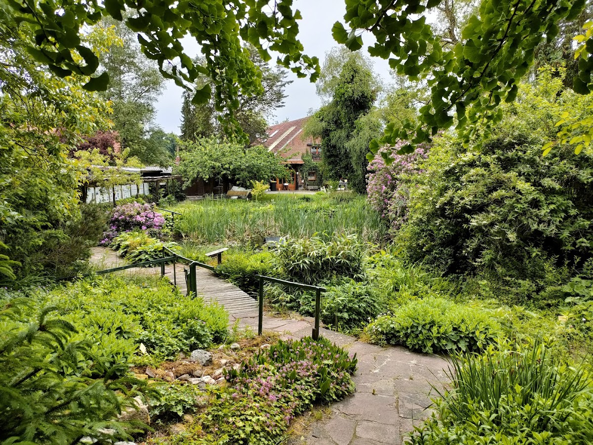 Schöner Garten mit verschiedenen Bereichen, ein Teich, Moor, Heilkräutergarten, kleine sitzecken. Ich war Anfang April da, die Bienen waren schon aktiv, sicher ist im Sommer mehr los. Schön als Ziel einer Radtour
