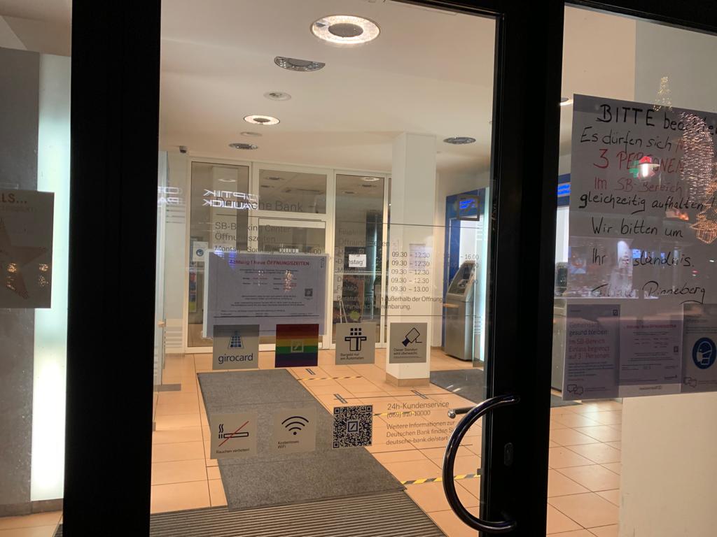 Schön. Seit dem Umbau keine Bargeldautomaten mehr. Man wird auf die Postbank verwiesen. Was fehlt dort? Deutsche Bank Automaten. Die Einzahlung funktioniert bei der Postbank nicht. Was soll denn sowas.