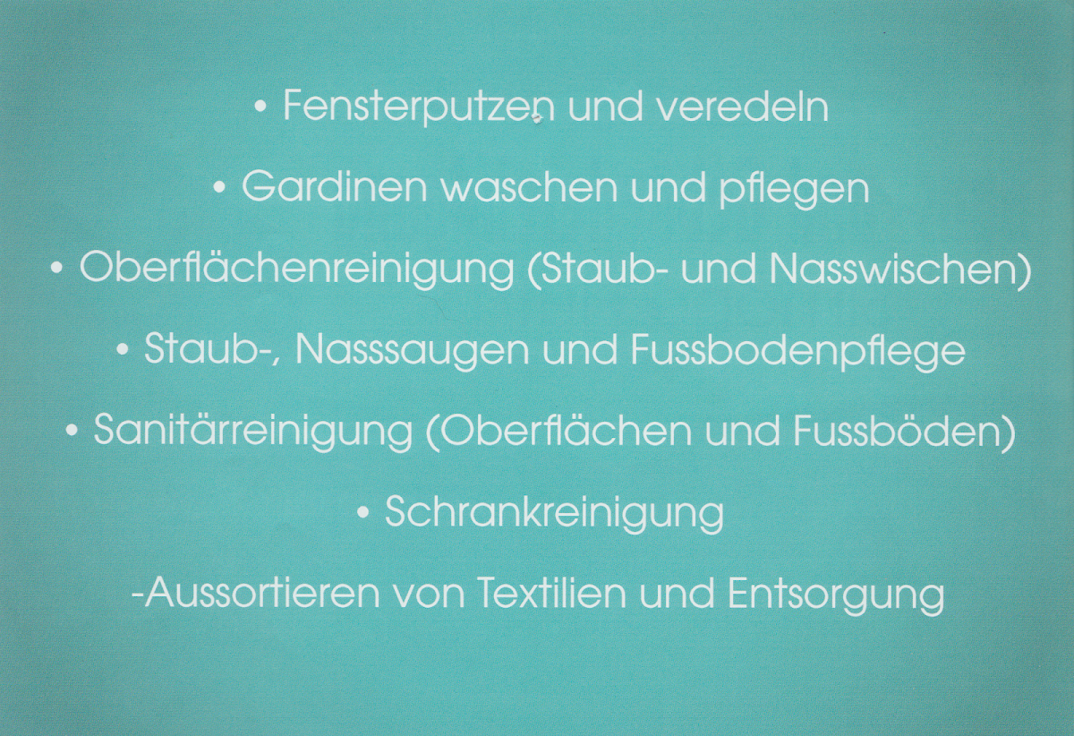 Wir sind dankbar für die zuverlässige Arbeit der Firma bei der wöchentlichen Grundreinig unseres Hauses und können sie uneingeschränkt weiter empfehlen.