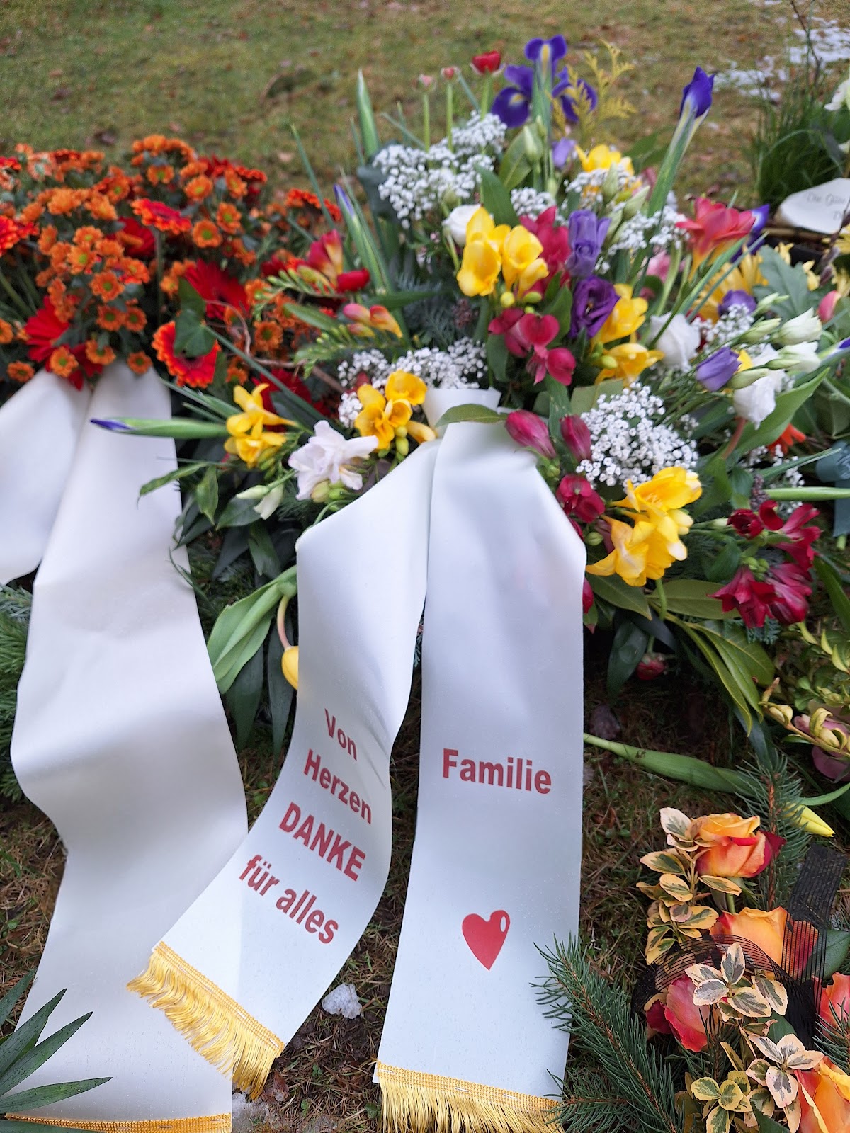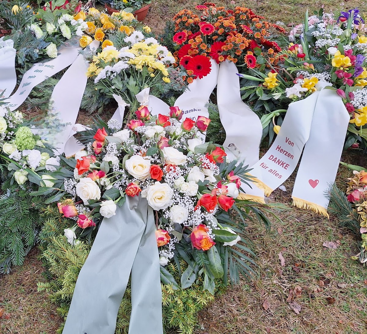 Die Firma Trautzsch hat den Blumenschmuck für die Beerdigung unserer Mutter gestaltet. Da wir alle von auswärts kamen, auch unsere privaten Blumengrüße. Alles war wunderbar.