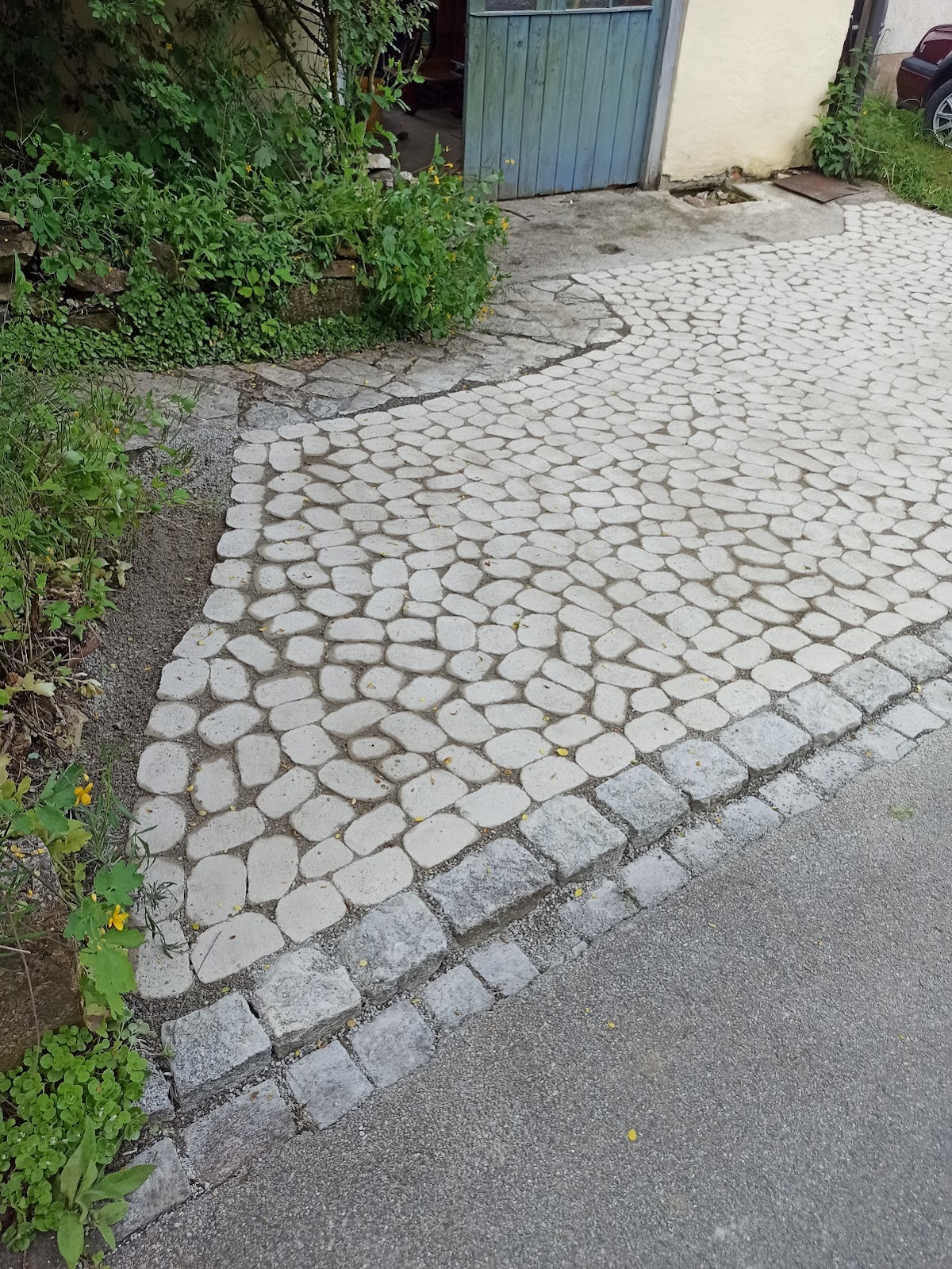 Kürzlich ließen wir für unsere Hofeinfahrt und den danebenliegenden Carport von der Firma Freiraumvision, Inhaber Herr Trommsdorf in Radolfzell eine ganz frische Pflasterung verlegen. Die Kosten für diese Arbeiten wurden mit circa 12.000 € veranschlagt. Unser Anliegen war es, ein stabiles und langfristig gut liegendes Pflaster mit wenig Zwischenräumen zu erhalten. Herr Trommsdorf empfahl uns das Pflaster Frieda von der Firma Hollp, welches im Gegensatz zu dem Standard Betonstein, welcher auf dem Nachbargrundstück verlegt ist, eine schönere Optik habe und gleichzeitig die von uns gewünschten Eigenschaften aufweisen würde. Durch eine so genannte „ Trommelung“ würden die Steine entlang ihrer Kanten ganz leicht gebrochen und bekämen ein antikes Aussehen. Auf meine Nachfrage, ob dadurch Steine nachhaltig beschädigt werden oder ob es sichtbare Lücken gäbe verneinte er dies ausdrücklich. Um dies zu belegen, bekamen wir die Bilder aus dem Internet der Herstellerfirma gezeigt (Foto 1und 2). Das tatsächliche Bild des verlegten Pflasters war zu unserer großen Enttäuschung allerdings ein ganz anderes: es waren nicht nur die Kanten gebrochen sondern an unzähligen Stellen fehlten ganze Ecken und Teilstücke. Das wurde zunächst durch Auffüllen mit Sand versucht zu kaschieren aber nach dem ersten Regen stellte sich die Lage wie auf den Bildern 3-5 gezeigt dar. Die gesamte Fläche sieht löchrig und inhomogen aus. Beim Betrachten hat man eher den Eindruck, es handele sich um eine aus kaputten Restmaterial zusammengesetzte Einfahrt. Weiterhin ist zu befürchten, dass es in den nächsten Wintern zu weiteren frostbedingten Abplatzungen kommen wird, was die Sache dann noch verschlimmert. Es fanden zwei Vor-Ort-Termine statt: einer mit Herrn Trommsdorf und uns und einer mit Herrn Trommsdorf und dem Vertreter der Firma Holpp. Als Ergebnis davon ist zu sagen: keiner der beiden Beteiligten Lieferanten/Handwerker möchte für den Schaden Verantwortung übernehmen. Es wurde uns lediglich der Ausbau von den am allerschlimmsten beschädigten Steinen angeboten, was aber keinerlei Verbesserung des Gesamtbildes bedeuten würde. Wahrscheinlich wird es einen Rechtsstreit geben. Wir würden auf keinen Fall nochmals das Pflaster Frieda von Holpp wählen und können auch nur davor warnen, speziell dieses Produkt zu kaufen. Auch die handwerklichen Leistung der ausführenden Firma überzeugt ganz und gar nicht.